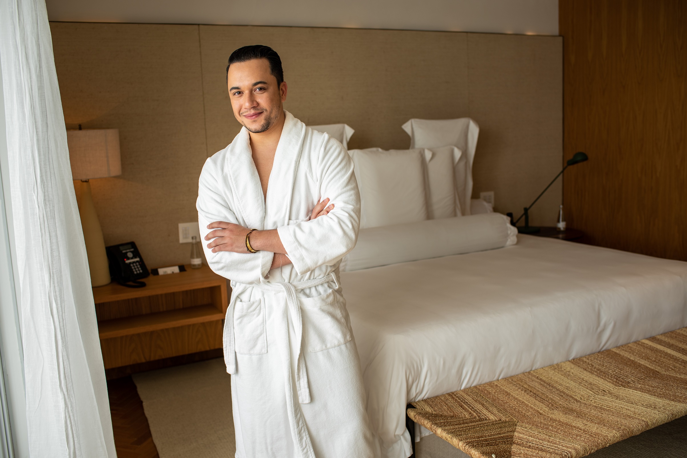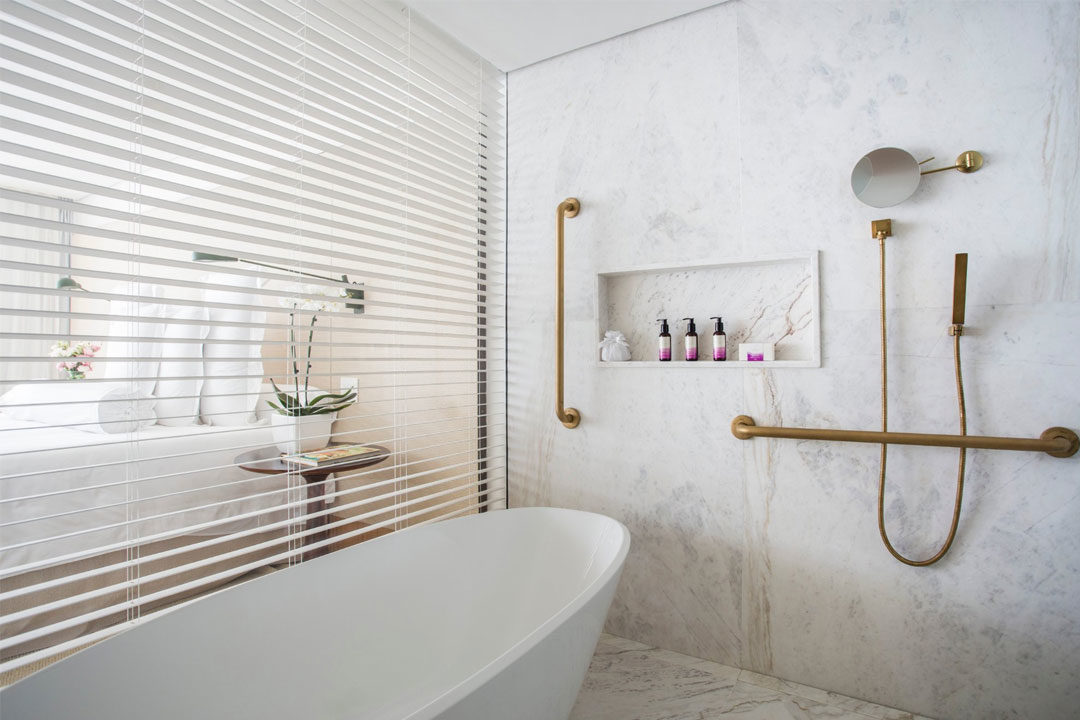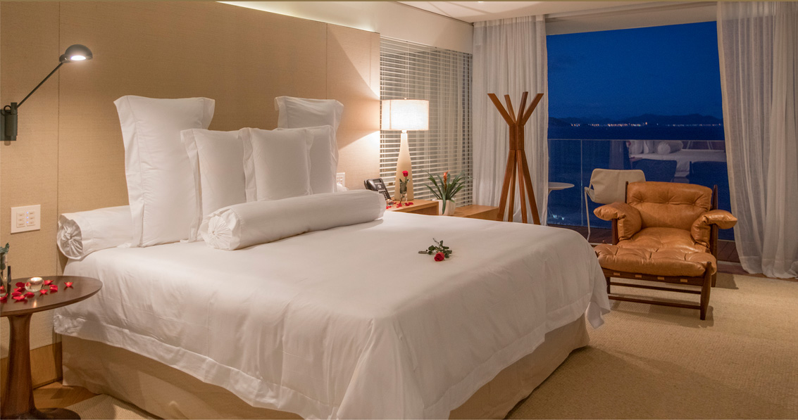 A localização privilegiada do Emiliano Rio é um dos pontos altos do hotel, que conta com 90 apartamentos amplos e exclusivos. Um deles é a Ocean Master Suite. De frente pro mar de Copacabana, seu projeto contemporâneo privilegia a luz natural, valoriza a vista e conecta os hóspedes à paisagem. Localizada no décimo andar, a suíte oferece cama super king size, roupa de cama de 400 fios 100% de algodão egípcio, uma pequena cozinha, banheira com massagem e dois chuveiros com vista para o mar. Além disso, a fachada pode ser aberta pro mar ou fechada pra privacidade, sem perder vista, iluminação e ventilação. Perfeito.