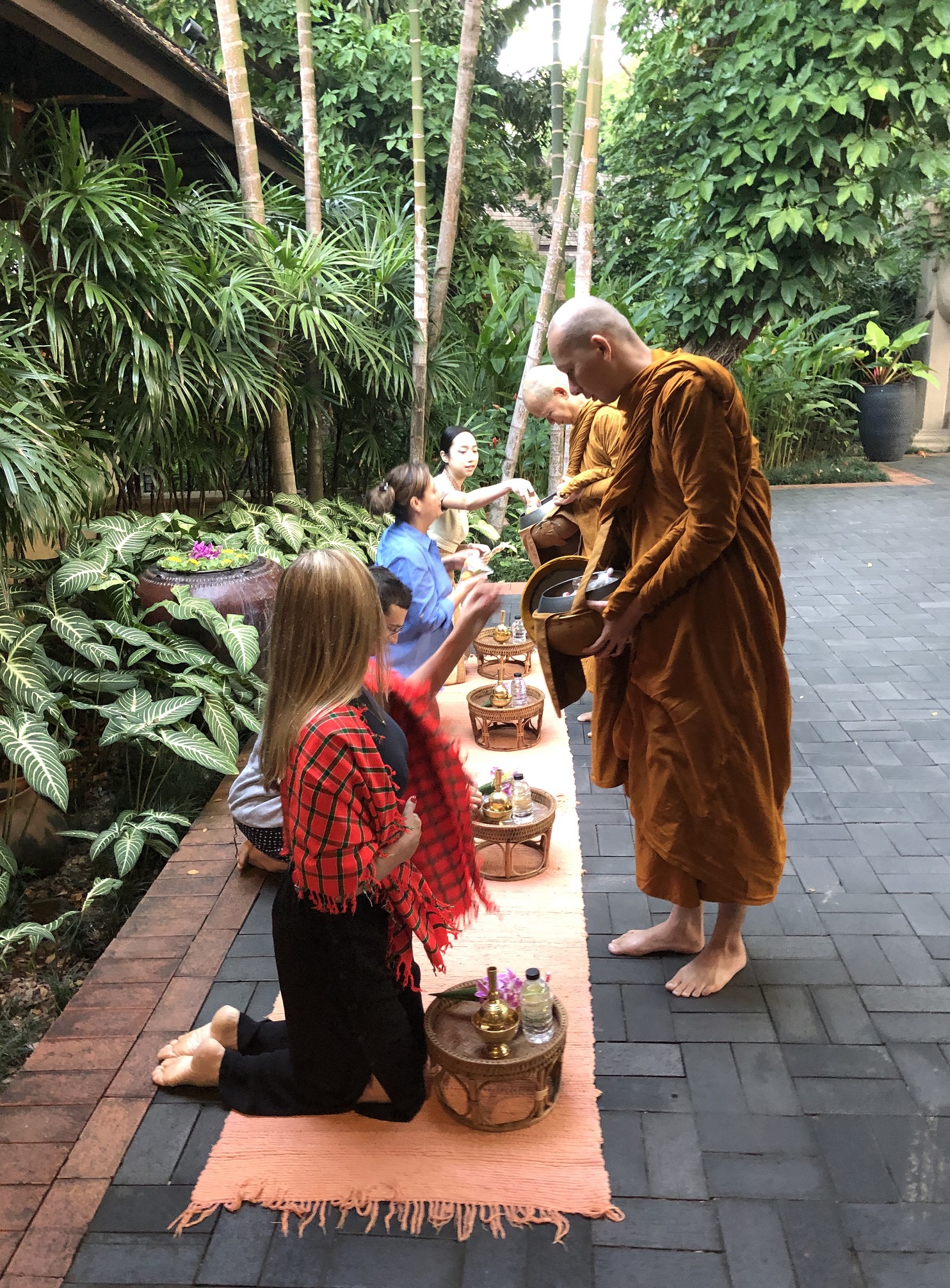 Já na chegada, ao passar pelo portão principal, o hóspede é tocado por uma atmosfera que convida a desacelerar e entrar em contato com a espiritualidade. Um pequeno templo budista com uma fonte antecede o lobby. É ali que todos os dias, antes do sol raiar, alguns monges que vivem nas redondezas passam para a “Ronda das Almas”, uma cerimônia feita diariamente para a doação de alimentos.