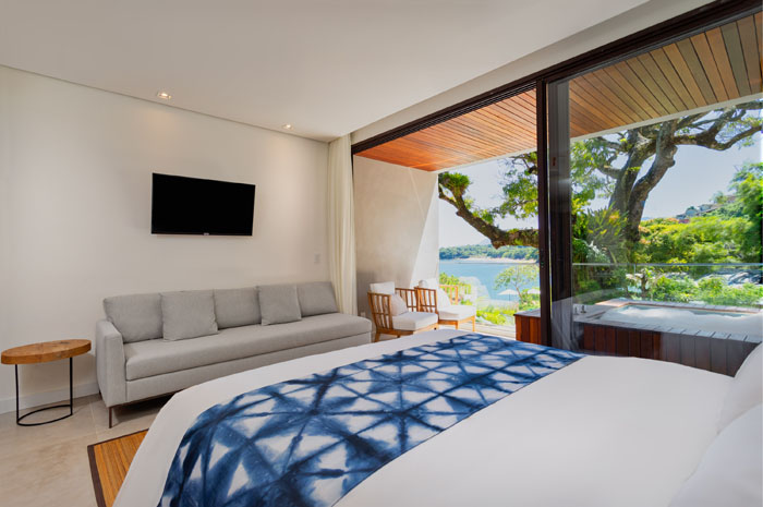 Além de toda a comodidade, os visitantes têm o privilégio de estar em contato direto com a natureza, já que o empreendimento é cercado por vegetação nativa da Mata Atlântica. Toda as suítes, que têm a partir de 40,5m², possuem vista para o mar. Os apartamentos têm vista do Canal de São Sebastião.