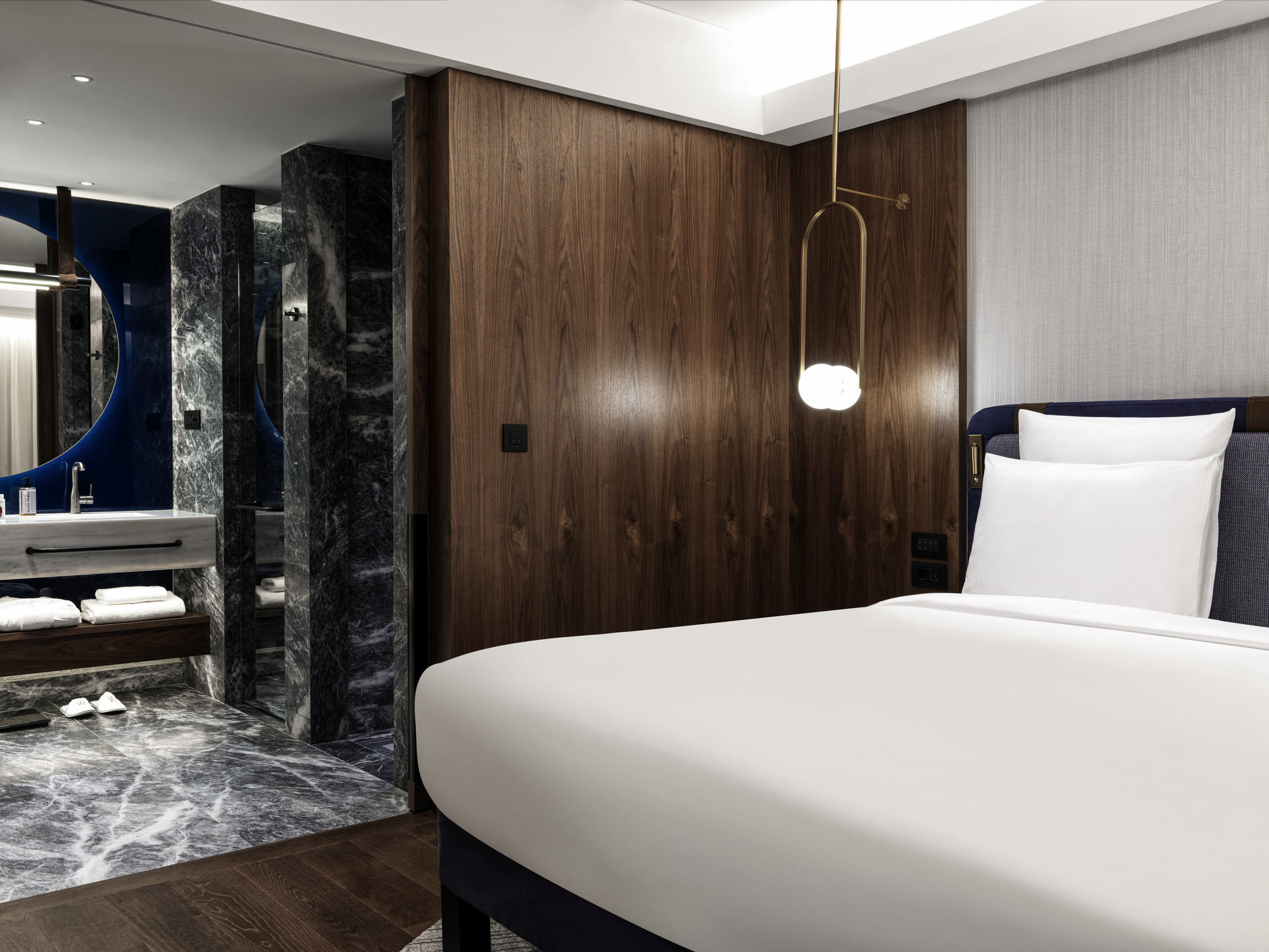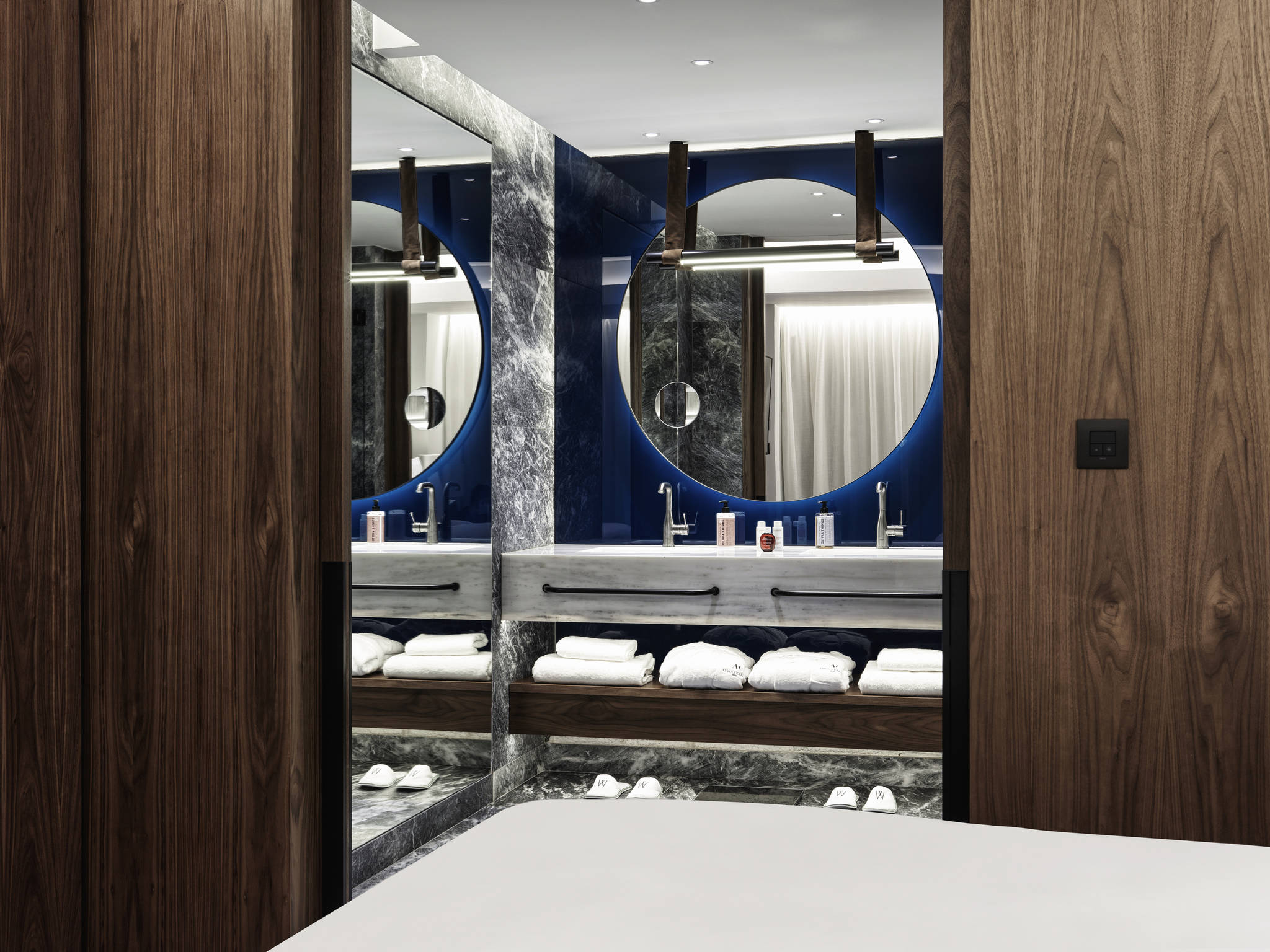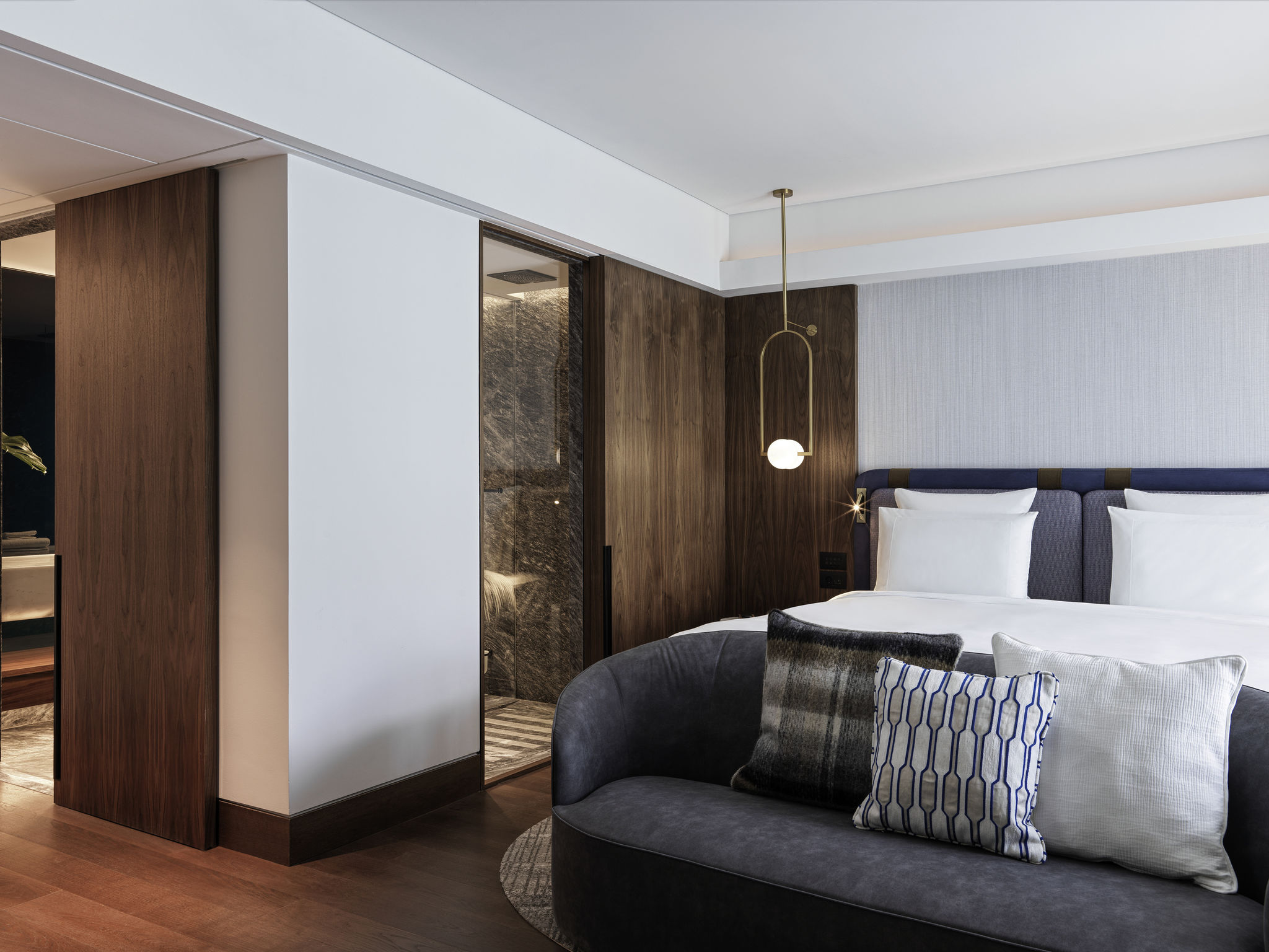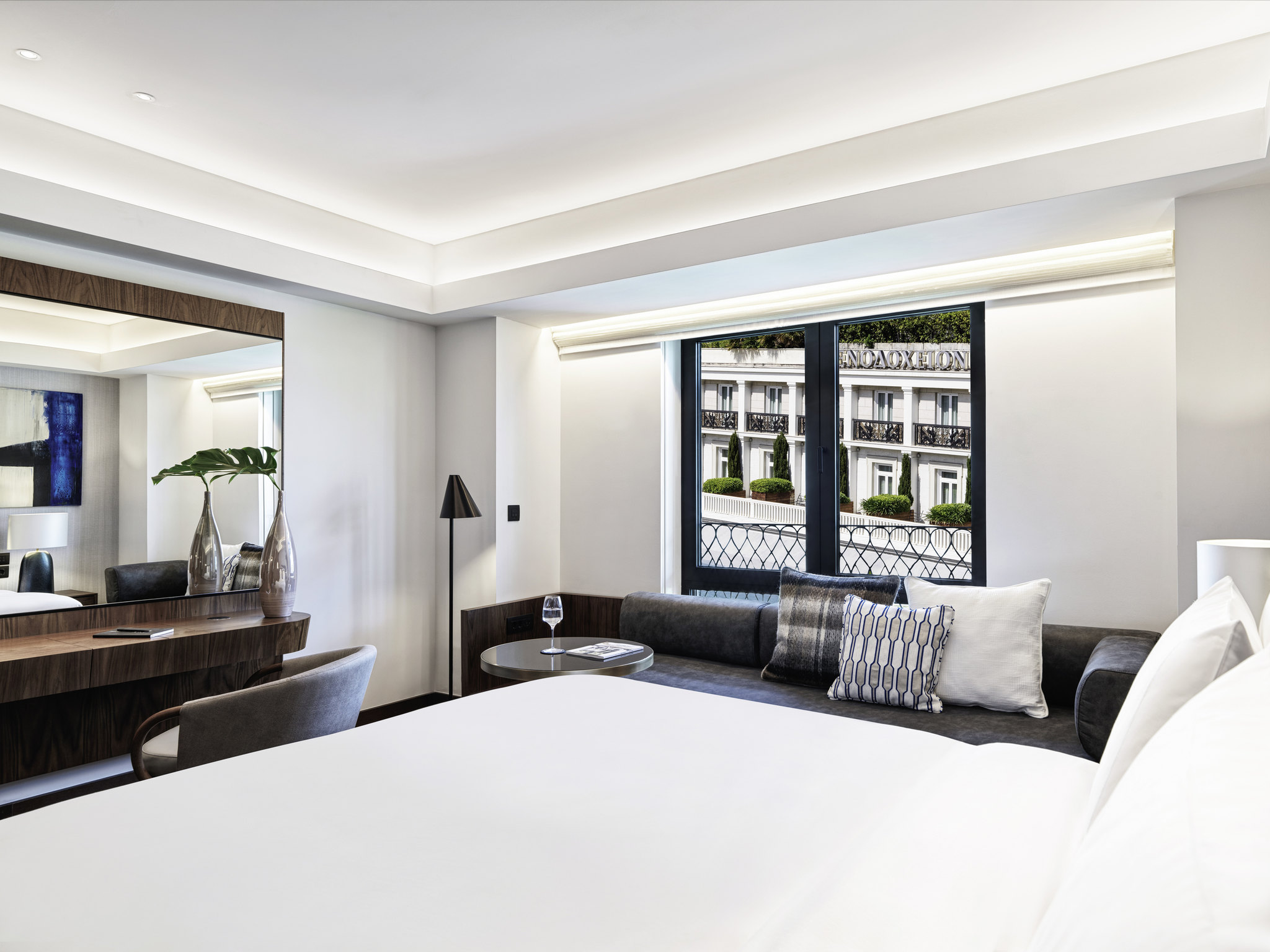 O hotel conta com 177 quartos, incluindo 18 suítes e uma exuberante suíte presidencial. Cada quarto é seu próprio universo estético, celebrando a elegância absoluta de materiais nobres com designs que integram sutilmente símbolos e padrões gregos, enquanto suas vistas mostram a vibrante capital grega em toda sua glória. Sua alta gastronomia e serviço impecável são marcas registradas dos restaurantes e bares do hotel, proporcionando uma experiência que é, ao mesmo tempo, emocionante e requintada, e que promete despertar uma conexão genuína entre o hóspede e a cidade. O restaurante principal, MFlavours, é uma viagem ao Mediterrâneo, com ambiente requintado e descontraído. Enquanto o Galerie Café, localizado no térreo do hotel, é um ponto de encontro mais badalado para convergir no coração pulsante de Atenas.