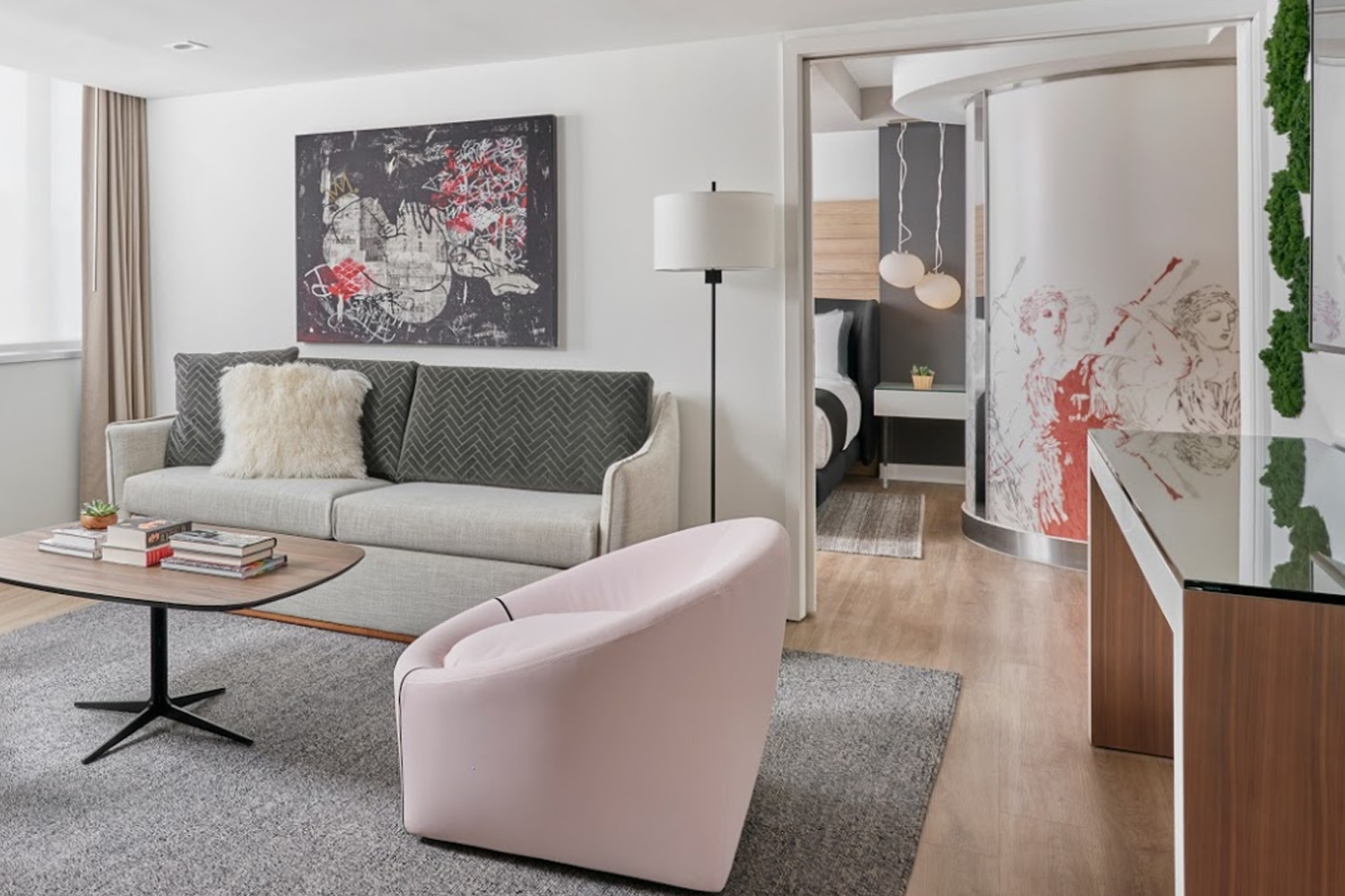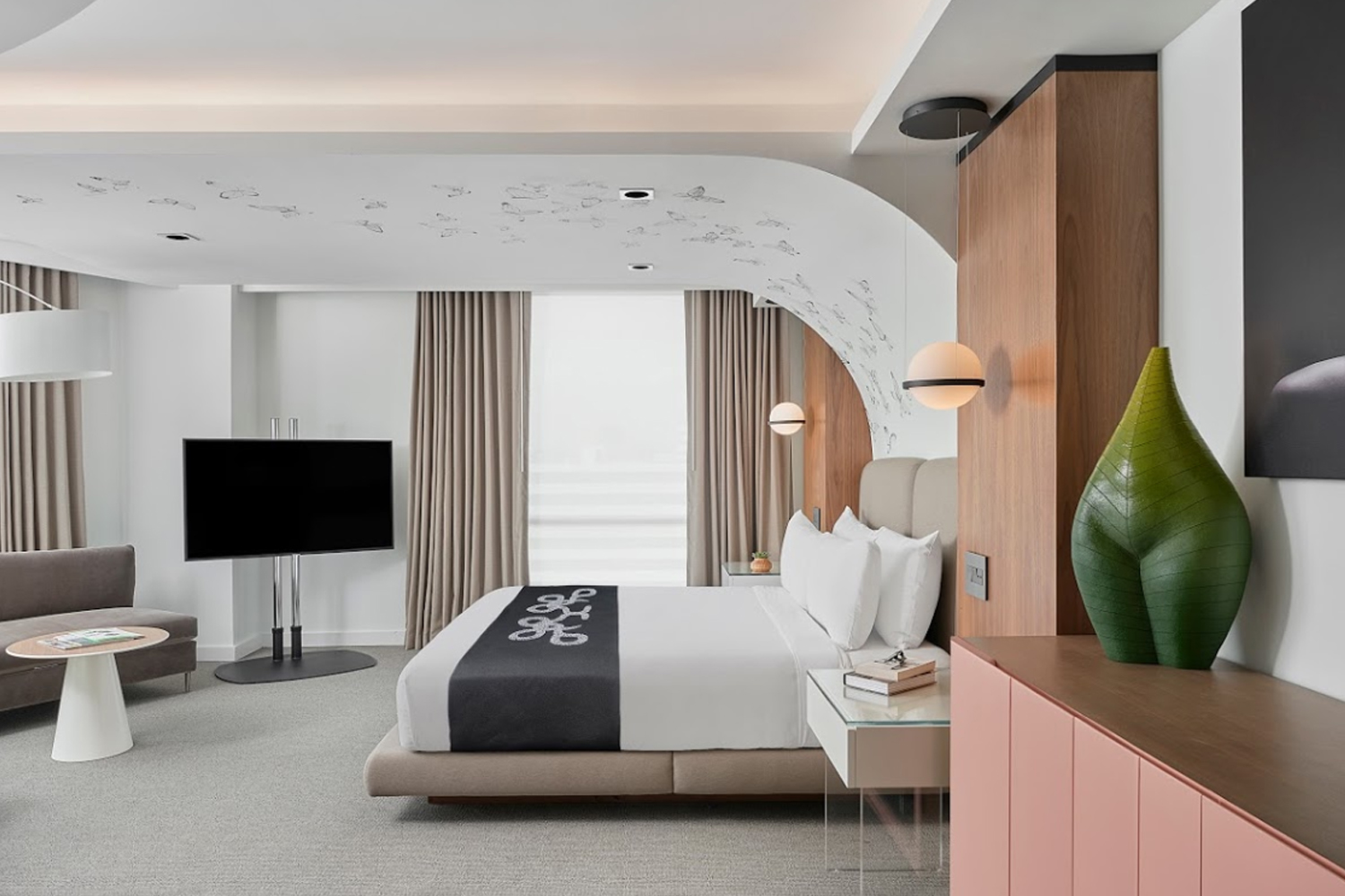 O hotel é inaugurado em um momento crucial na história do país. Seu saguão é dominado por um retrato extraordinário da falecida e honrada juíza Ruth Bader Ginsburg. Seu conceito pontilhista, concebido por Andrea Sheehan e produzido por Julie Coyle Studios usando 20.000 tampões pintados à mão e reaproveitados, é uma versão contemporânea e íntima dessa forma de arte clássica. Este retrato único homenageia a dedicação ao longo da vida da juíza Ginsburg aos direitos e igualdade das mulheres e seu humor da forma mais pessoal e íntima. Outra instalação icônica, uma parede curva com 8.000 botões de protesto que representam gerações de marchas e eventos que promovem o movimento feminista, presta homenagem ao 100º aniversário do Direito das Mulheres ao Voto na América.