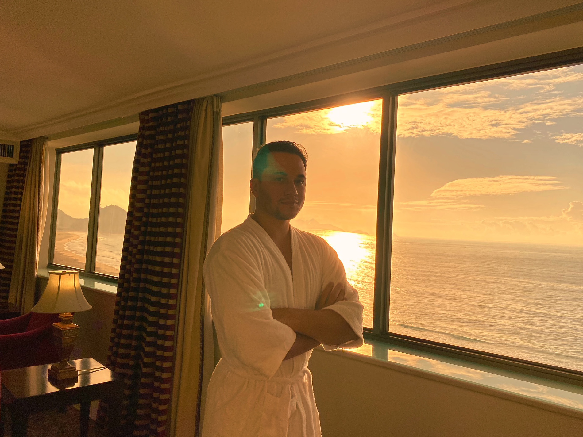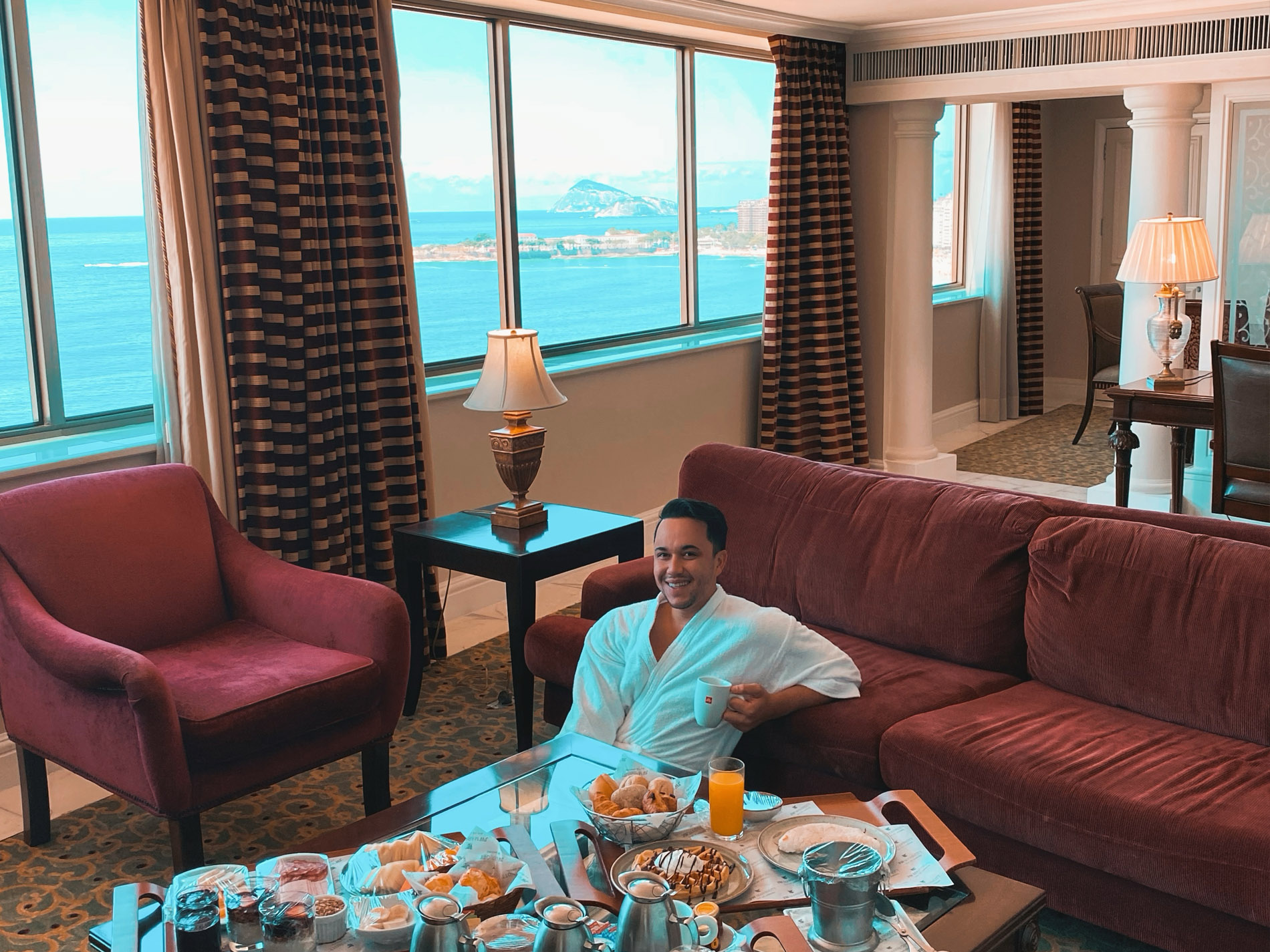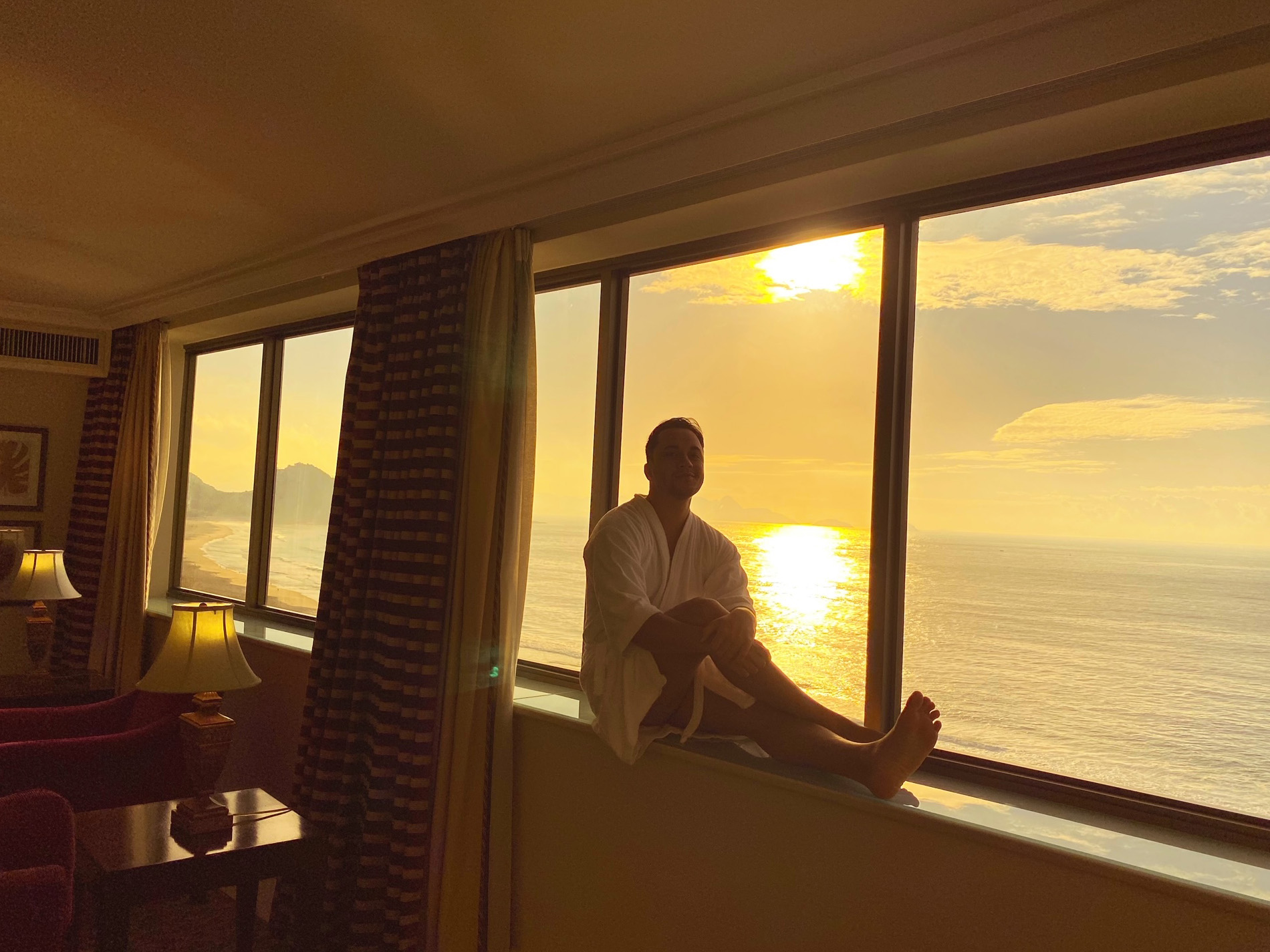 O ápice de se hospedar na presidencial do JW, situada no décimo sétimo andar do prédio, é a vista deslumbrante para a Praia de Copacabana. A suíte (salão, sala de jantar e quarto), é cercada ponta a ponta por um janelão debruçado sobre o mar. Pela manhã, à tarde ou à noite, não importa o horário, o visual da Avenida Atlântica foi o protagonista. Depois da vista, pontos para a cama, e em tempos de pandemia, pontos também para todos os protocolos de segurança e saúde que estão sendo adotados pelo hotel. Estar no JW Marriott é vivenciar o verdadeiro estilo American Way of Life. Tive a sorte de despertar cedo e apreciar um dos mais bonitos nascer do sol, bem ali, na minha frente.