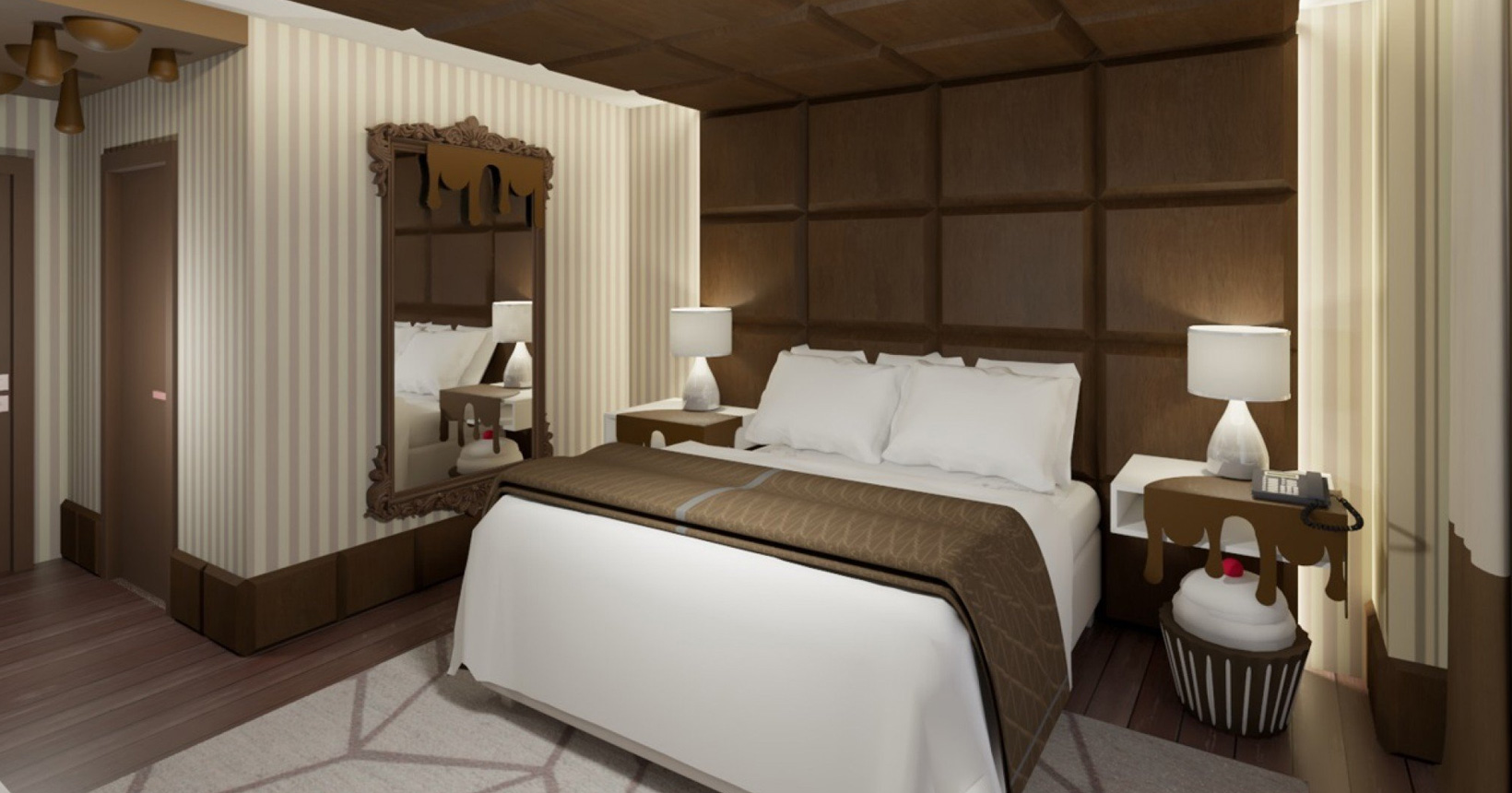 “O Chocotel vai oferecer uma experiência multissensorial na qual o chocolate reina absoluto, das suítes temáticas até o lobby do hotel, que terá uma cascata de chocolate de 5 metros de altura”, revela Daniela Gallasini, uma das empresárias por trás da ideia. O empreendimento terá seu próprio bean to bar – espaço boutique onde o chocolate é elaborado a partir do cacau até o produto final. “Teremos ainda o Chocospa, que será uma área de relaxamento e conexão com os benefícios que o cacau pode proporcionar a saúde”, explica Daniel Rodolfo, o segundo sócio do investimento.