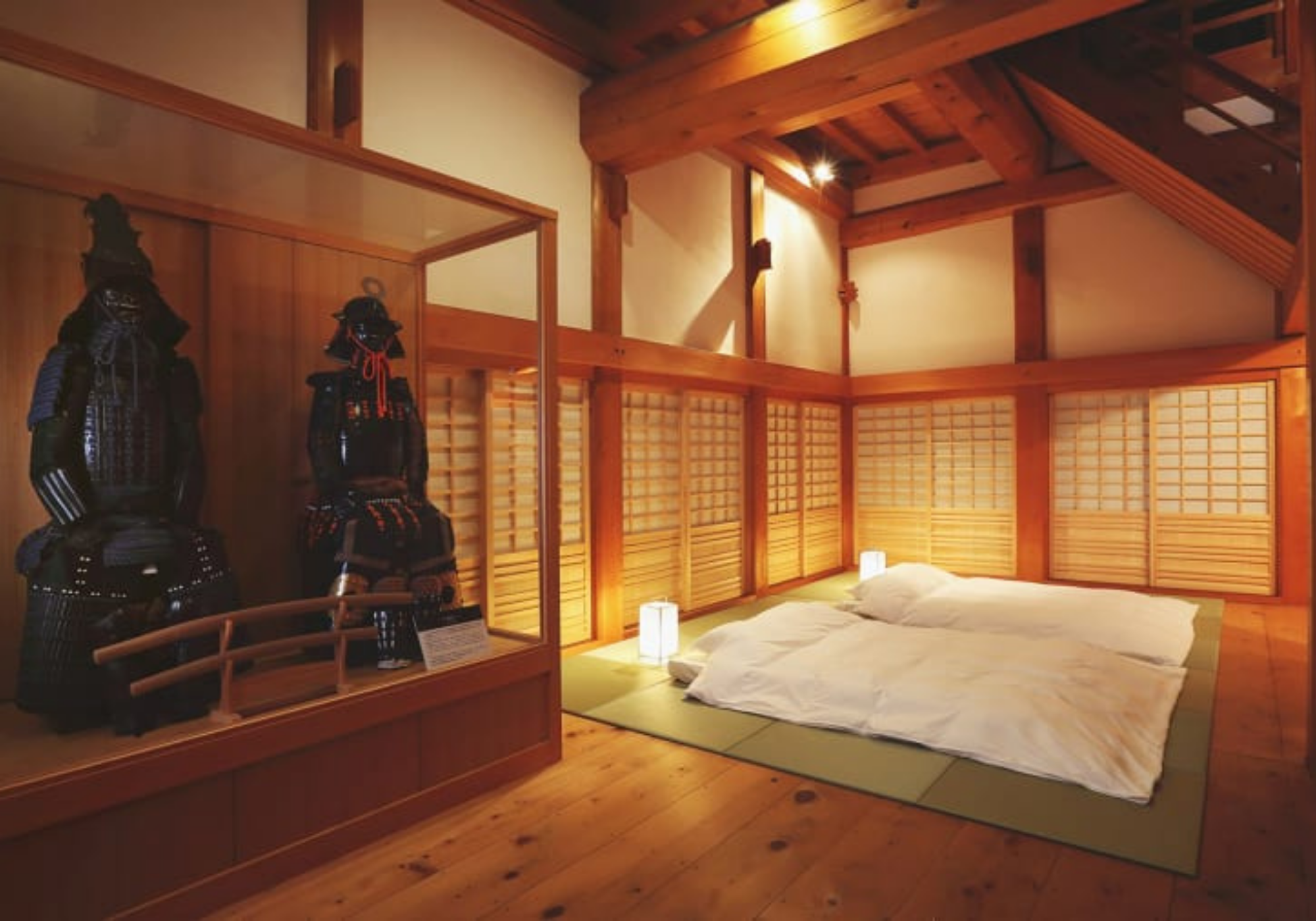 Como a torre do castelo não possui lojas, banheiros ou ar-condicionado, um banheiro luxuoso e um lounge anexo foram construídos em um canto escondido do complexo para os hóspedes do hotel. Na chegada, os hóspedes – que podem optar por vestir-se com quimonos tradicionais e trajes de guerreiros medievais – serão recebidos pelo som de trombetas, bandeiras e um esquadrão de pólvora. Eles então serão tratados com uma kagura local, uma apresentação de dança tradicional que é registrada como uma importante propriedade cultural folclórica intangível do Japão.