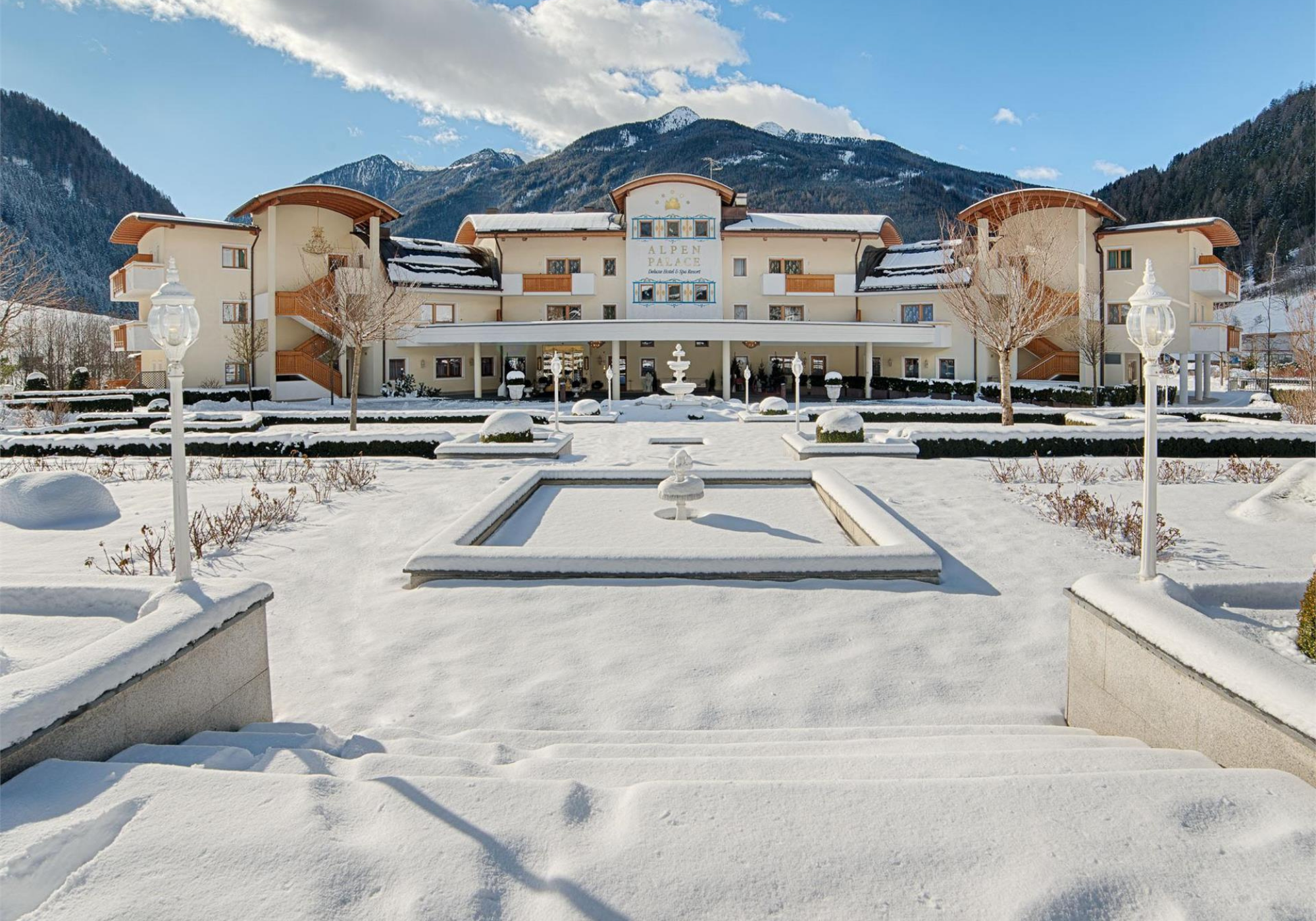 Visão de frente do Alpenpalace Luxury Hideaway & Spa Retreat na Itália