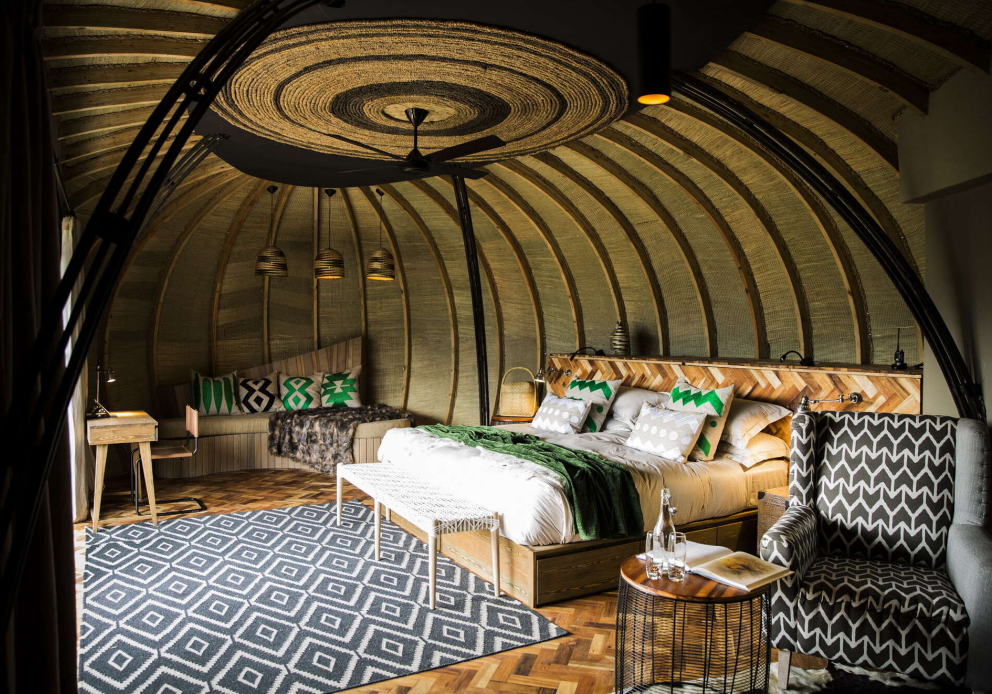 O Bisate Lodge se encaixa perfeitamente em uma lista dos melhores hotéis ecológicos do mundo. Situado no coração de um anfiteatro natural formado por um vulcão erodido, o design do hotel é impressionantemente único. Uma série de vilas com telhado de palha em forma de ninho formam as acomodações luxuosas do chalé, todas com varandas espaçosas que oferecem vistas encantadoras da encosta circundante de Ruanda.