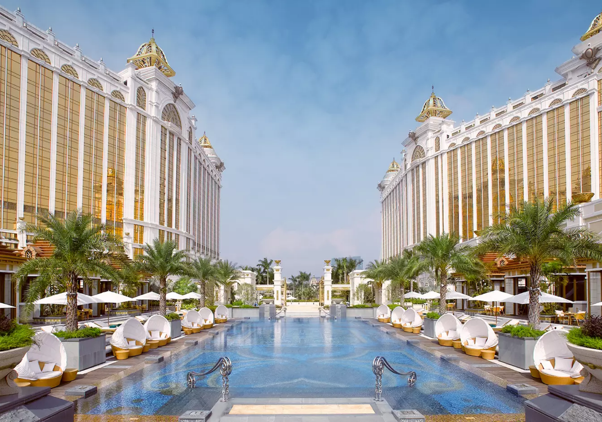Localizado no calçadão leste do resort, o Raffles at Galaxy Macau, é um marco arquitetônico impressionante com uma ponte aérea de vidro conectando as duas torres em cada andar. O design de cada suíte é inspirado em um palácio moderno, com uma seleção de suítes com suas próprias piscinas e jardins privativos, e também um pequeno número de suítes loft exclusivas, com janelas de dois andares. Os famosos mordomos do Raffles, renomados por seu serviço atencioso e discreto, irão pessoalmente entregar um nível de hospitalidade iluminada, que é graciosa e intuitiva para cada hóspede.