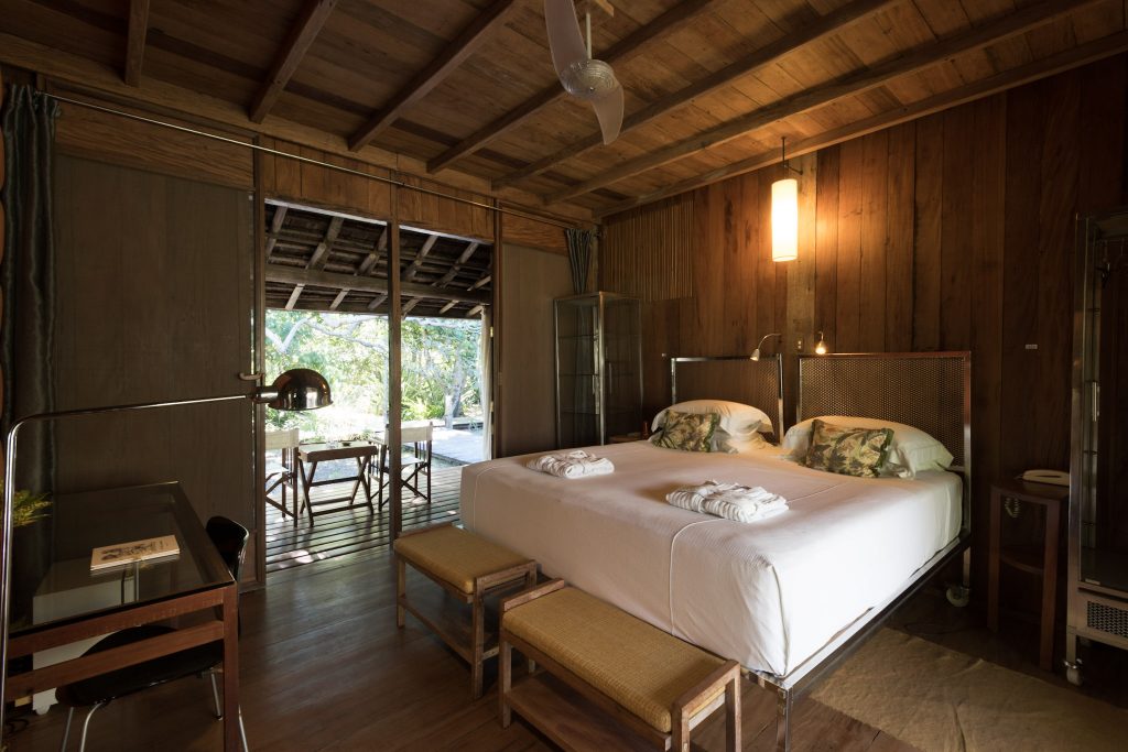 Com apenas oito habitações exclusivas, divididas entre quatro casas e quatro quartos, o hotel combina o conforto contemporâneo com o charme rústico local. Os ambientes íntimos e aconchegantes planejados para estar em sintonia com o meio ambiente, uma homenagem não apenas à cultura de Corumbau, mas também aos artesãos de todos os lugares e épocas.