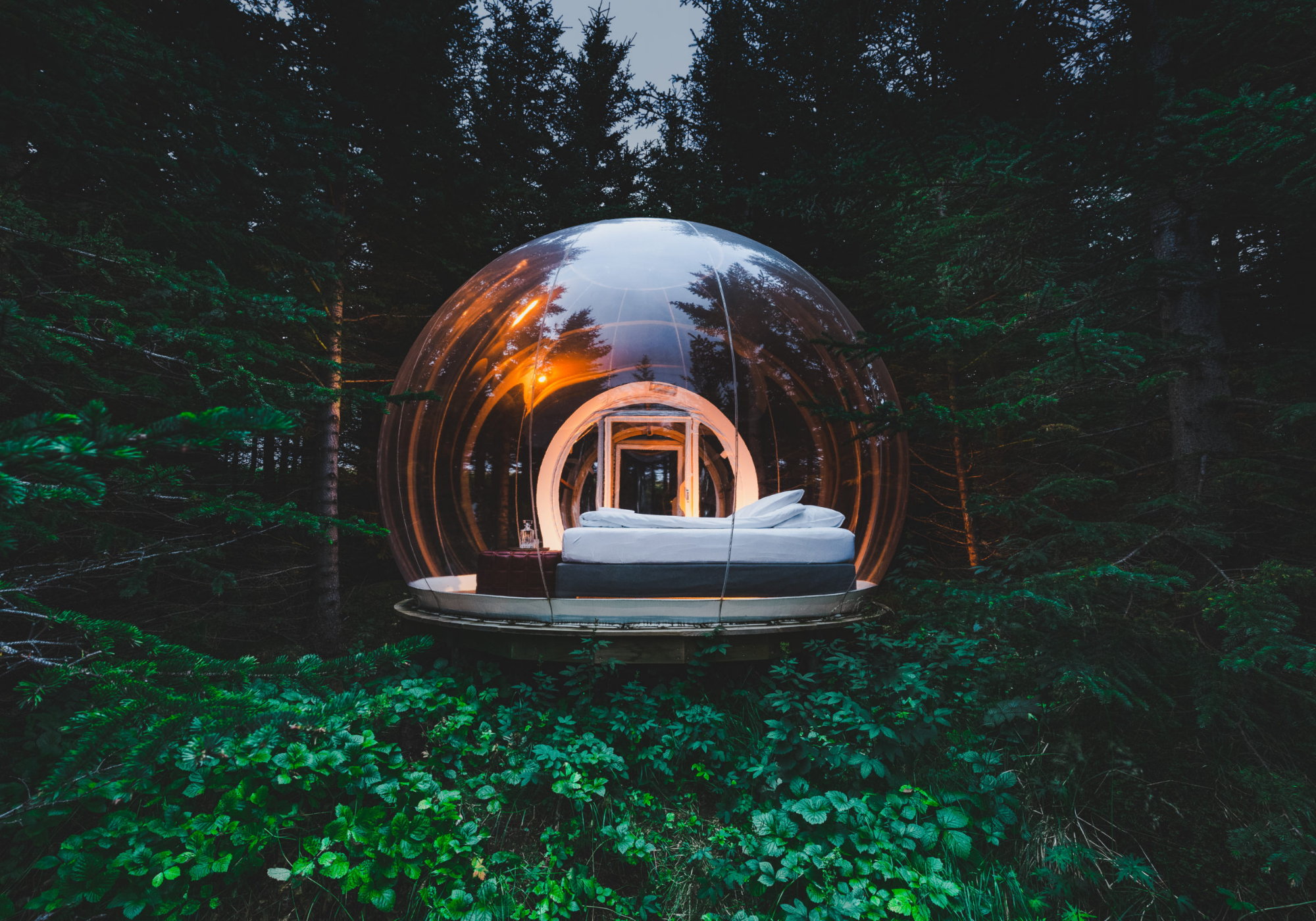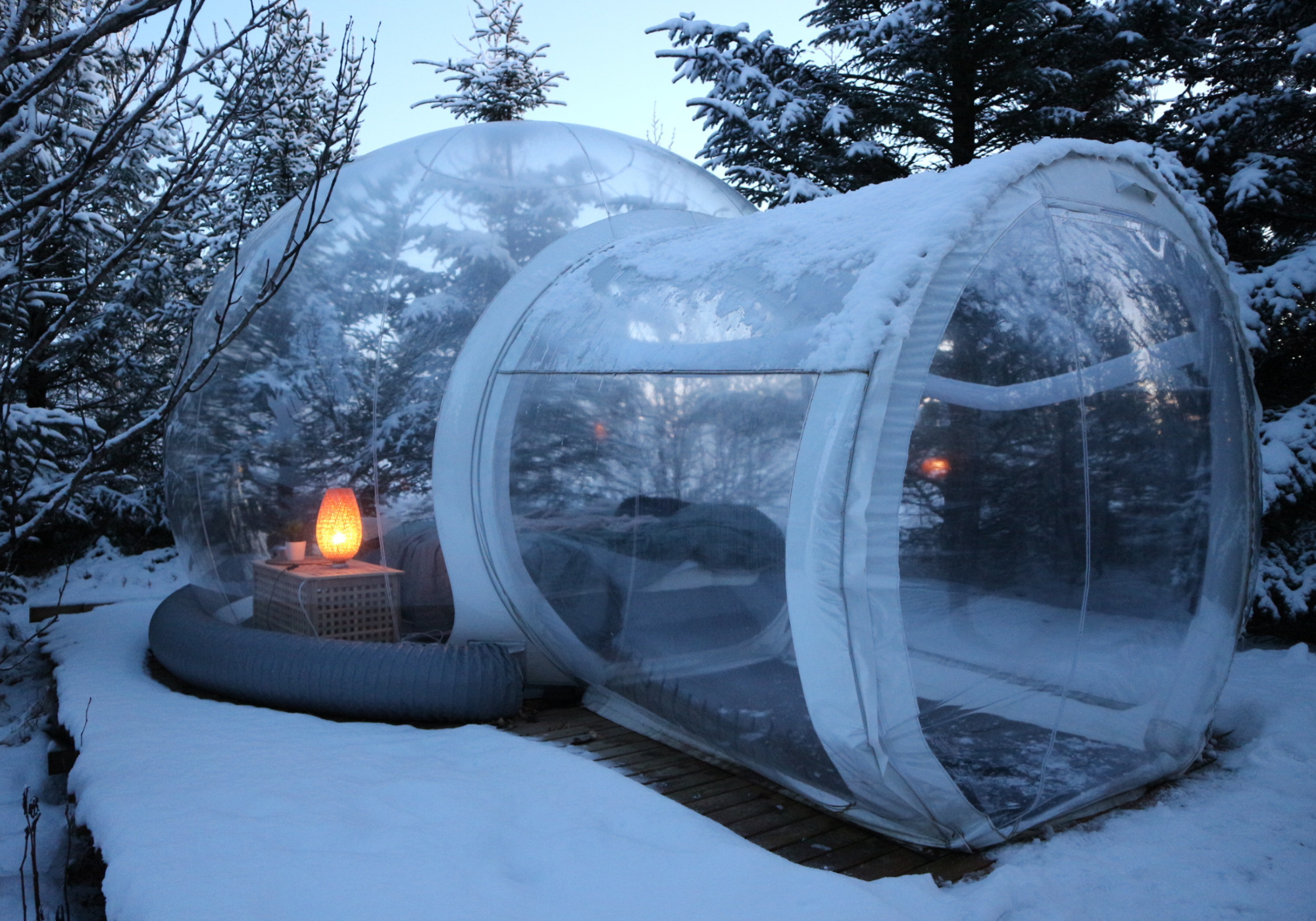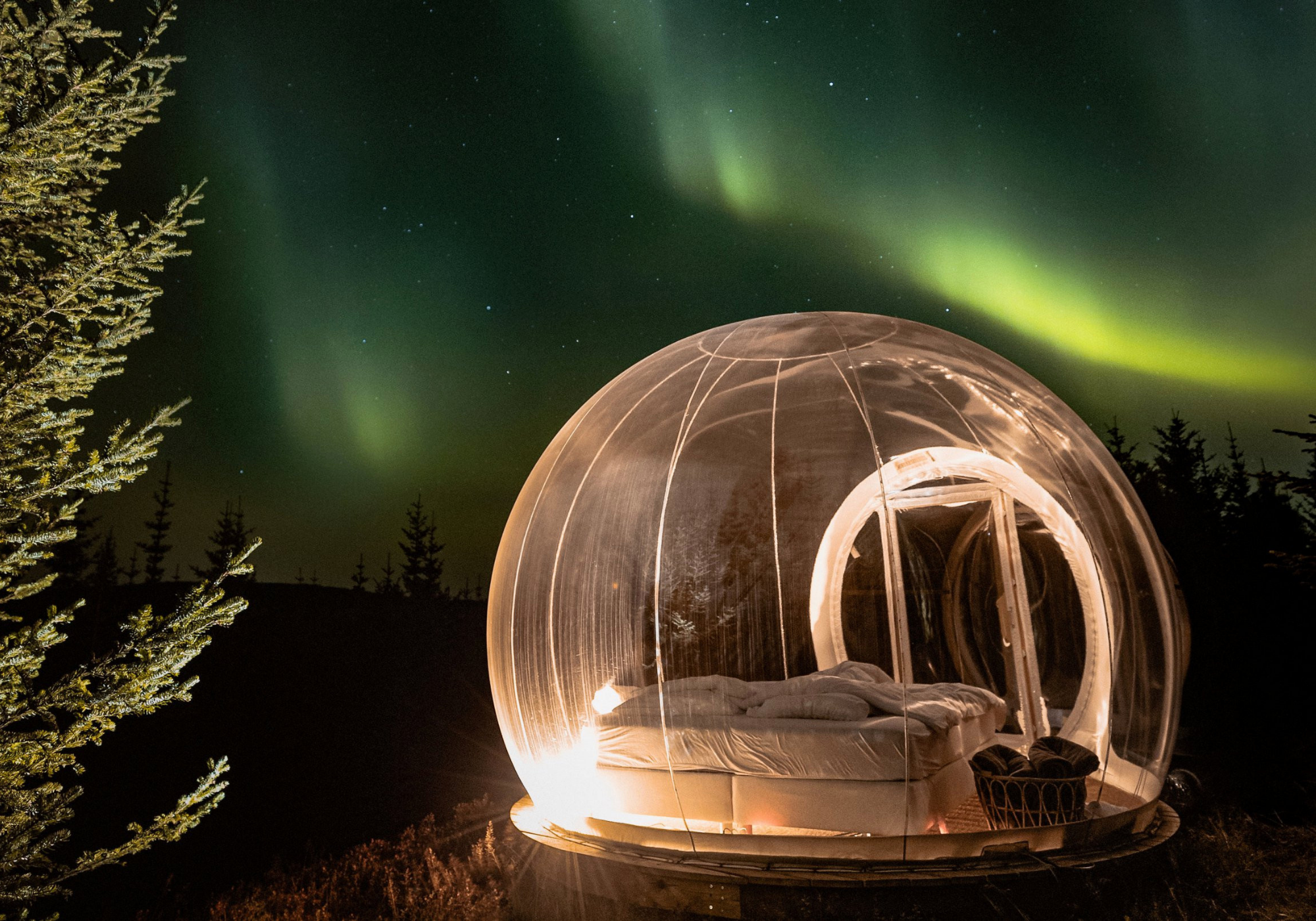 A Islândia parece ter magia em cada esquina. Com gêiseres, a aurora boreal e muitas outras maravilhas naturais para citar, você vai querer passar cada segundo de sua visita certificando-se de que está aproveitando o país ao máximo.A solução? O Buubble Hotel. Fundado em 2016, este hotel possui quartos que significam que você não perderá um segundo da incrível natureza islandesa. Em vez de quatro paredes, um piso e um teto, você dormirá dentro de uma bolha de plástico transparente. Esqueça a necessidade de sair para contar as estrelas, assistir a neve cair suavemente ou admirar as luzes do norte coloridas brincando no horizonte.