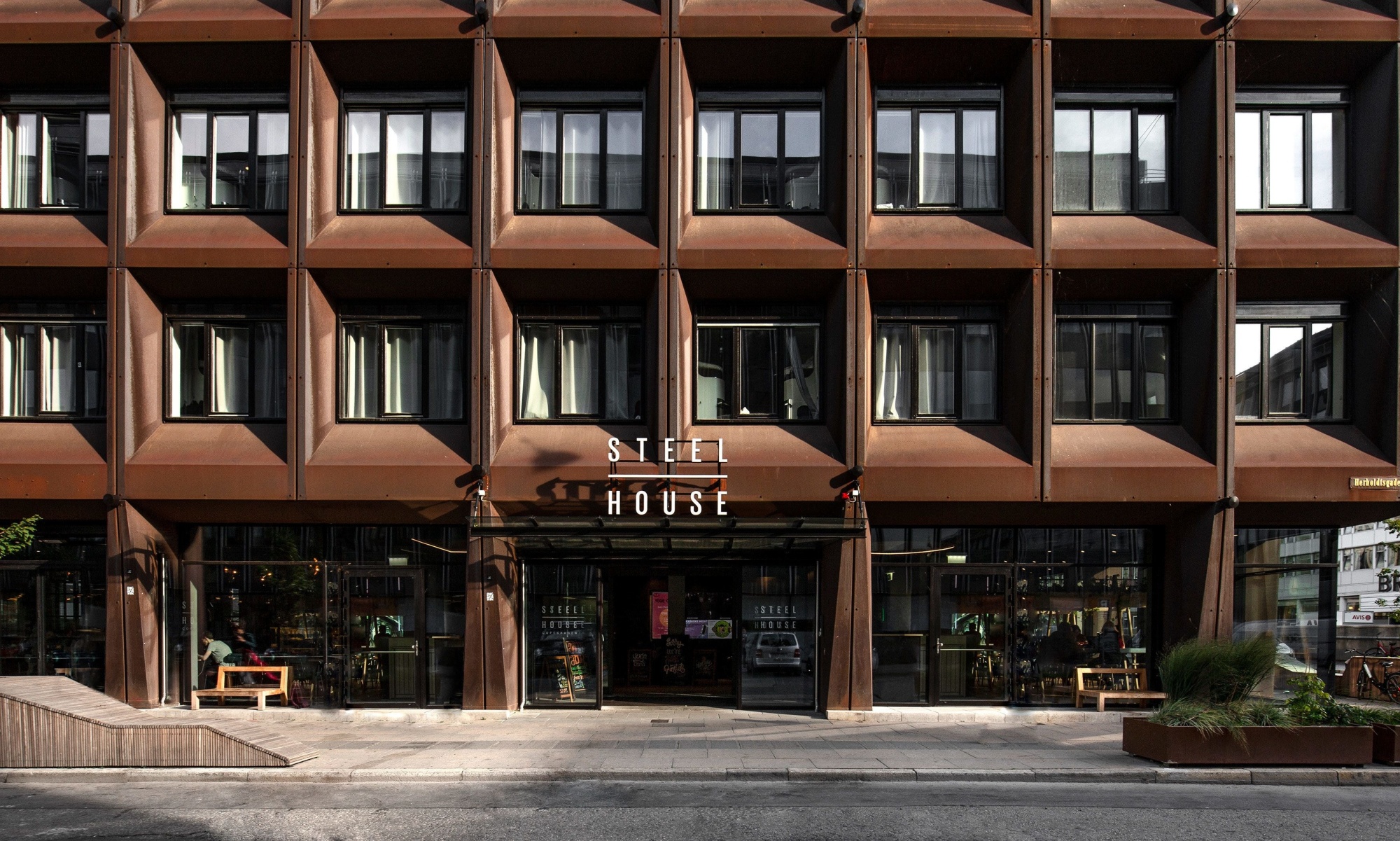 O novo mundo do mochileiro abre novas perspectivas para os hostels, aqueles que não tem medo de ousar. Inspirando-se nos hotéis de Nova York, a fachada do Steel House Copenhagen é coberta por aço corten e o design industrial continua a ser dominante no interior. Este espaço de co-working possui 12 tablets instalados em mesas, prontos para serem utilizados gratuitamente. A pousada tem um total de 1.154 camas, a maioria delas são dormitórios de 4 e 6 camas, mas você também pode reservar um dos 64 quartos privativos com varanda e vista para a cidade.