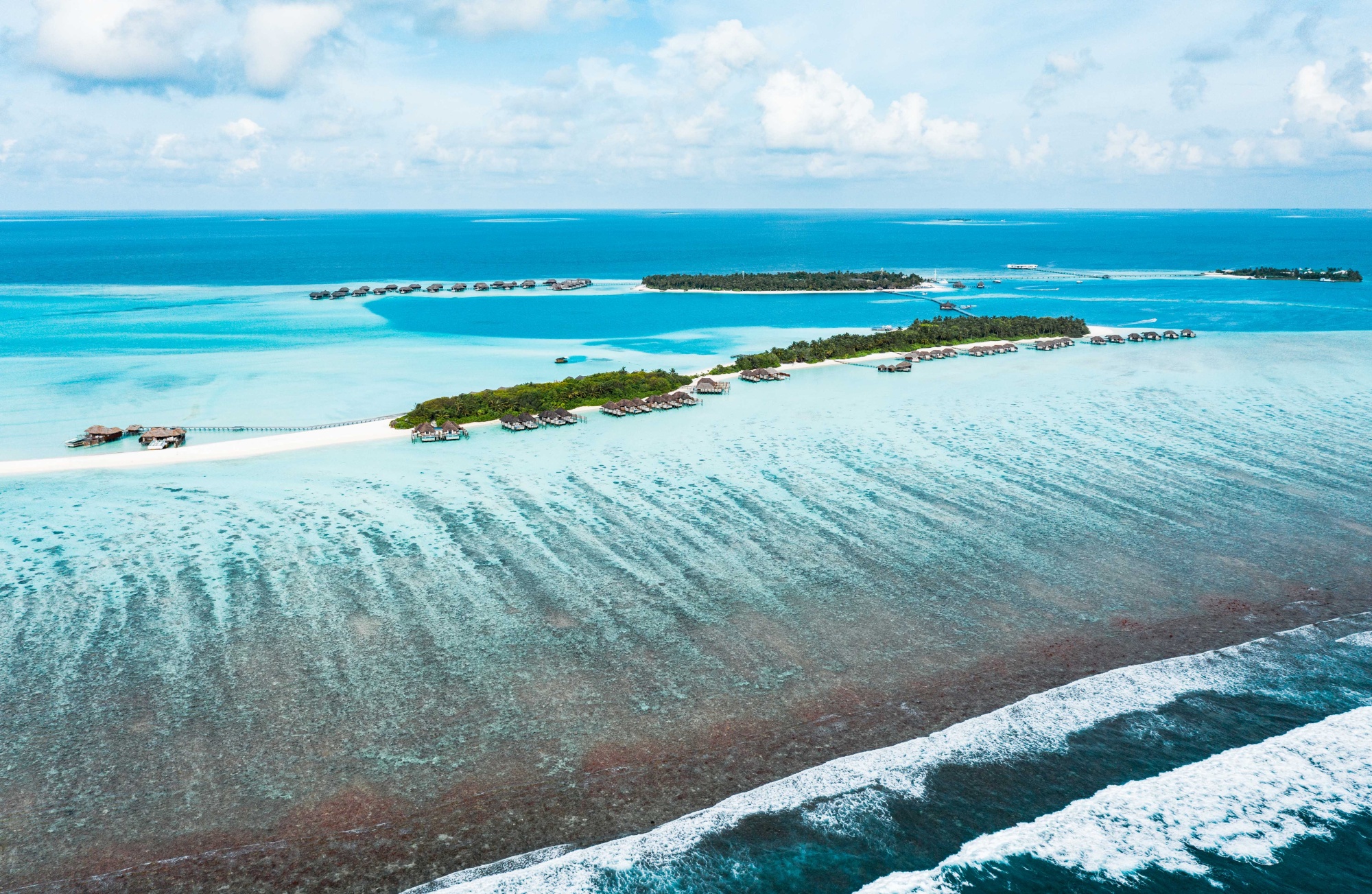 Duas Ilhas Maldivas interconectadas constituem um dos lugares mais interessantes do mundo. As ilhas Rangali e Rangalifinolhu estão ligadas entre si por uma passarela de madeira e abrigam 150 vilas sobre a água e a praia, formando o Conrad Maldives Rangali Island Resort. O grande destaque é residência de 3 quartos com um espaço subaquático, The Muraka. É a primeira suíte de 2 andares do mundo, onde o nível inferior fica 5 metros abaixo da água. É aqui que você encontrará o quarto principal, nas profundezas do Oceano Índico, oferecendo uma vista incomparável da vida da marina, dia e noite. Painéis de vidro são colocados na cúpula de acrílico curva de 180 graus, eliminando a ponte entre as pessoas e a vida no oceano. Experiência incrível!