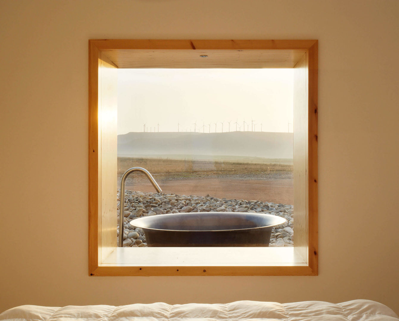 A elegante banheira do Hotel Aire de Bardenas na região de Navarra, no norte da Espanha, certamente atrairá a atenção de qualquer entusiasta de arquitetura e design. A sua localização exterior e singular, conectada ao quarto, é uma forma excelente de recarregar as baterias, enquanto o hóspede aprecia elementos crus de uma paisagem semidesértica. E como a banheira não tem telhado, um banho noturno dará aos viajantes a chance de sentar e contemplar as estrelas em paz total.