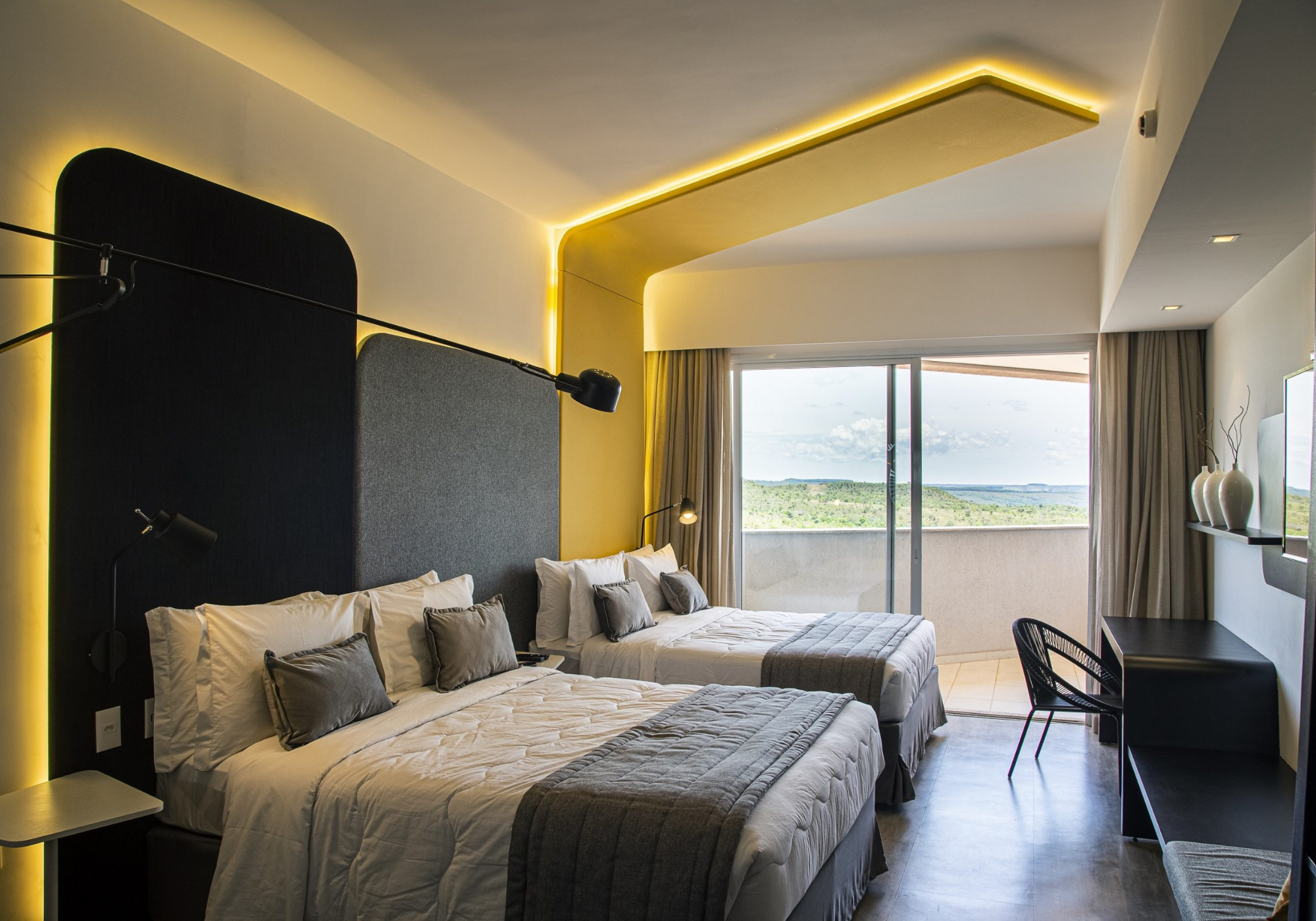 Situado no coração do cerrado, o design traz para a obra a paixão por nosso país, inspirado pelos traços de Oscar Niemeyer com elementos do bioma, onde pode ser observado características da ‘savana brasileira’ logo no lobby. As curvas de Niemeyer se fazem presentes desde os detalhes dos corredores até a marcenaria exclusiva e arredondada da cabeceira dos móveis das suítes, contribuindo para uma experiência única, elegante e surpreendente para os hóspedes. O projeto inovador e sofisticado conta com uma área de lazer de 13.700 m², incluindo um grandioso complexo de águas com piscina externa de 4.000 m² e 15 espaços de jacuzzi, dispõe ainda de um bar molhado tendo uma vista privilegiada para o Cerrado.