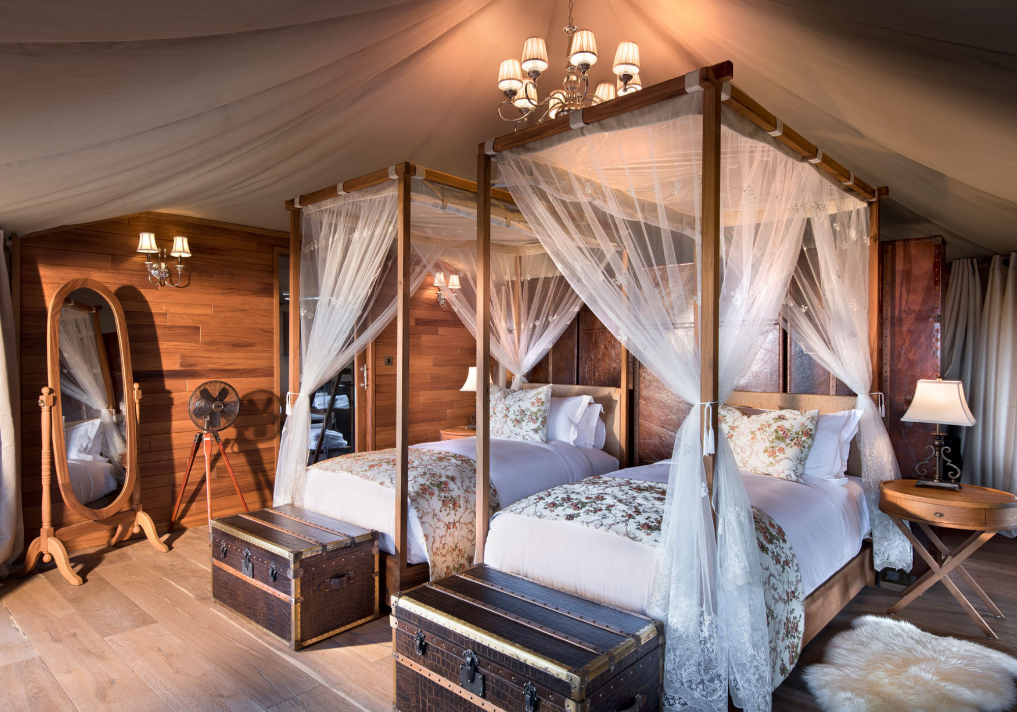 Harmoniosamente aninhadas nas florestas intocadas de Nyaruswiga, com vista para a deslumbrante savana aberta, as 14 tendas de safári luxuosas do One Nature oferecem uma conexão sensacional com a natureza de tirar o fôlego. Apoiadas em postes feitos de madeira sólida de eucalipto africano e cobertas com a mais elegante coroa de latão digna da realeza, as barracas foram projetadas para incorporar luxo em uma experiência emocionante de acampamento safári africano, usando apenas material ecológico e madeira com certificação ambiental.
