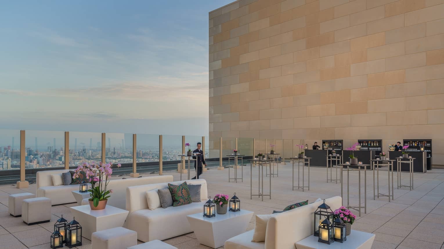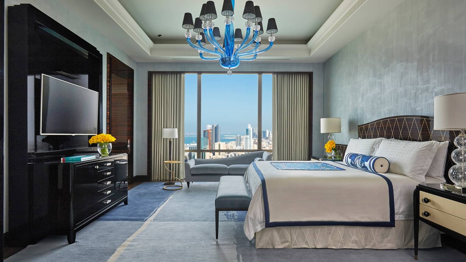 O Four Seasons Hotel Bahrain Bay é uma declaração arquitetônica elevada em sua própria ilha exclusiva no coração do reino de Bahrain, no Oriente Médio. O marco icônico foi projetado por Skidmore, Owings & Merrill, a mesma empresa de arquitetura por trás do Burj Khalifa de Dubai. Cada um dos 273 quartos de tamanho generoso – incluindo 57 suítes – apresenta uma vista elevada e desobstruída de janelas grandes, encorajando os hóspedes a relaxar e desfrutar do impressionante Golfo Pérsico ou do horizonte de Manama.