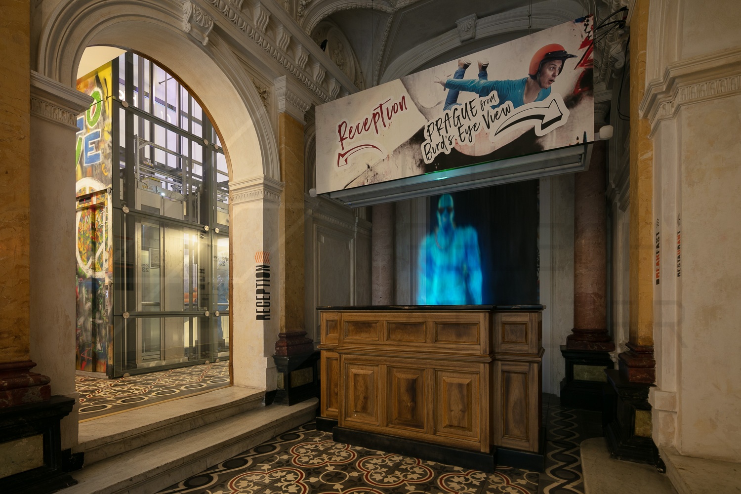 O anticonvencionalismo surge assim que você entra na recepção. Carro antigo enferrujado pendurado na parede enquanto uma impressora 3D está ocupada criando a próxima obra de arte contemporânea. Um homem azul em tamanho real impresso em 3D está esperando no elevador, casualmente assustando o hóspede caso ele fique ligeiramente embriagado depois de engolir alguns litros da boa e velha cerveja tcheca. Os quartos possuem um mapa gigante do sistema de metrô de Praga, garantindo que você não se perca.
