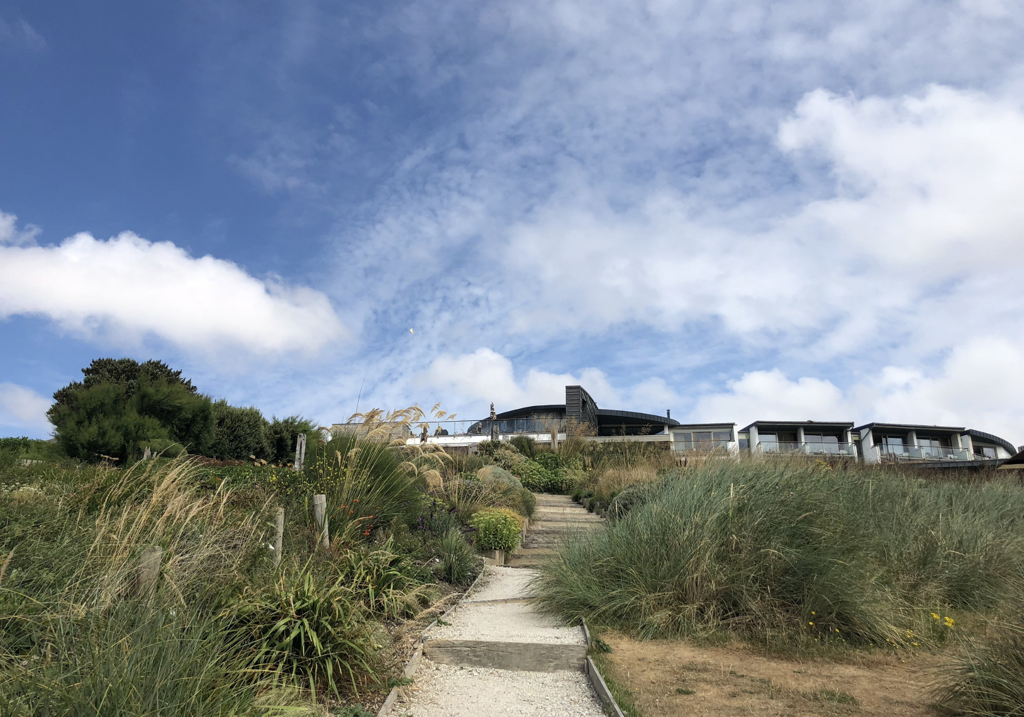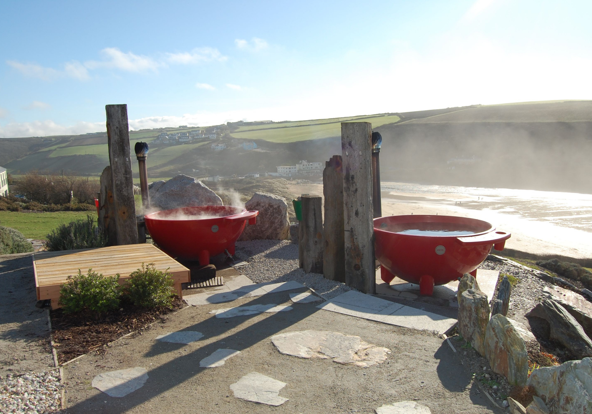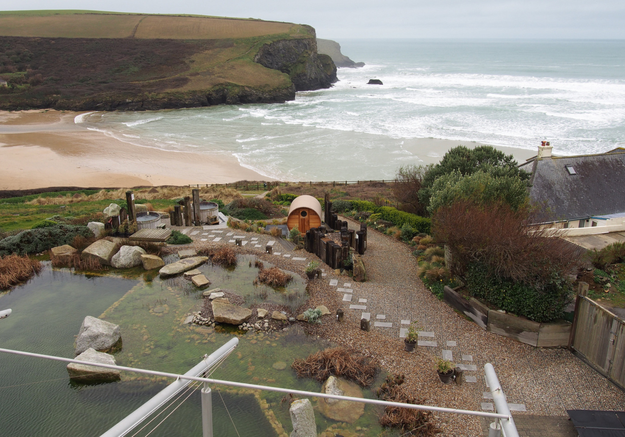 O spa do hotel é para pessoas que realmente não gostam de spas. Acessível e cheio de luz, em vez de estar escondido em alguma caverna sombria. A exigência de reservar slots para usar a piscina, sauna seca e a vapor significava o luxo de ter o lugar só para você, enquanto as banheiras de hidromassagem externas no topo da falésia são realmente especiais, perfeitas para apreciar as estrelas. Embora pareçam feitos para o público do Instagram, é realmente uma experiência maravilhosa mergulhar em uma banheira de hidromassagem sob o sol de outono, com uma brisa fresca do mar e algumas bolhas em um vidro longo e fino. A piscina ao ar livre, por sua vez, é uma piscina naturalmente livre de produtos químicos, limpa por juncos, ideal para aqueles que não sentem medo de baixas temperaturas.