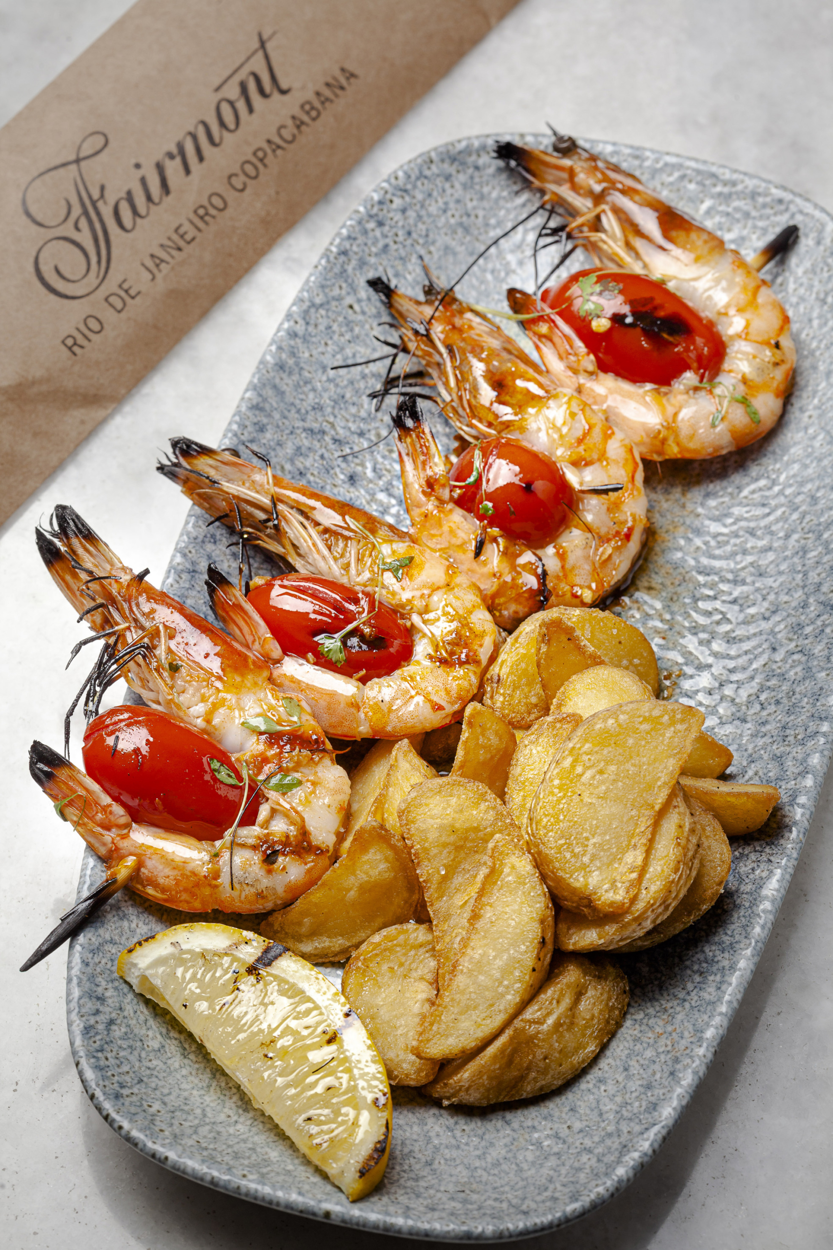 CAMARÃO ESPETADO NA BRASA / FOTO: DIVULGAÇÃO/ DHANI BORGES