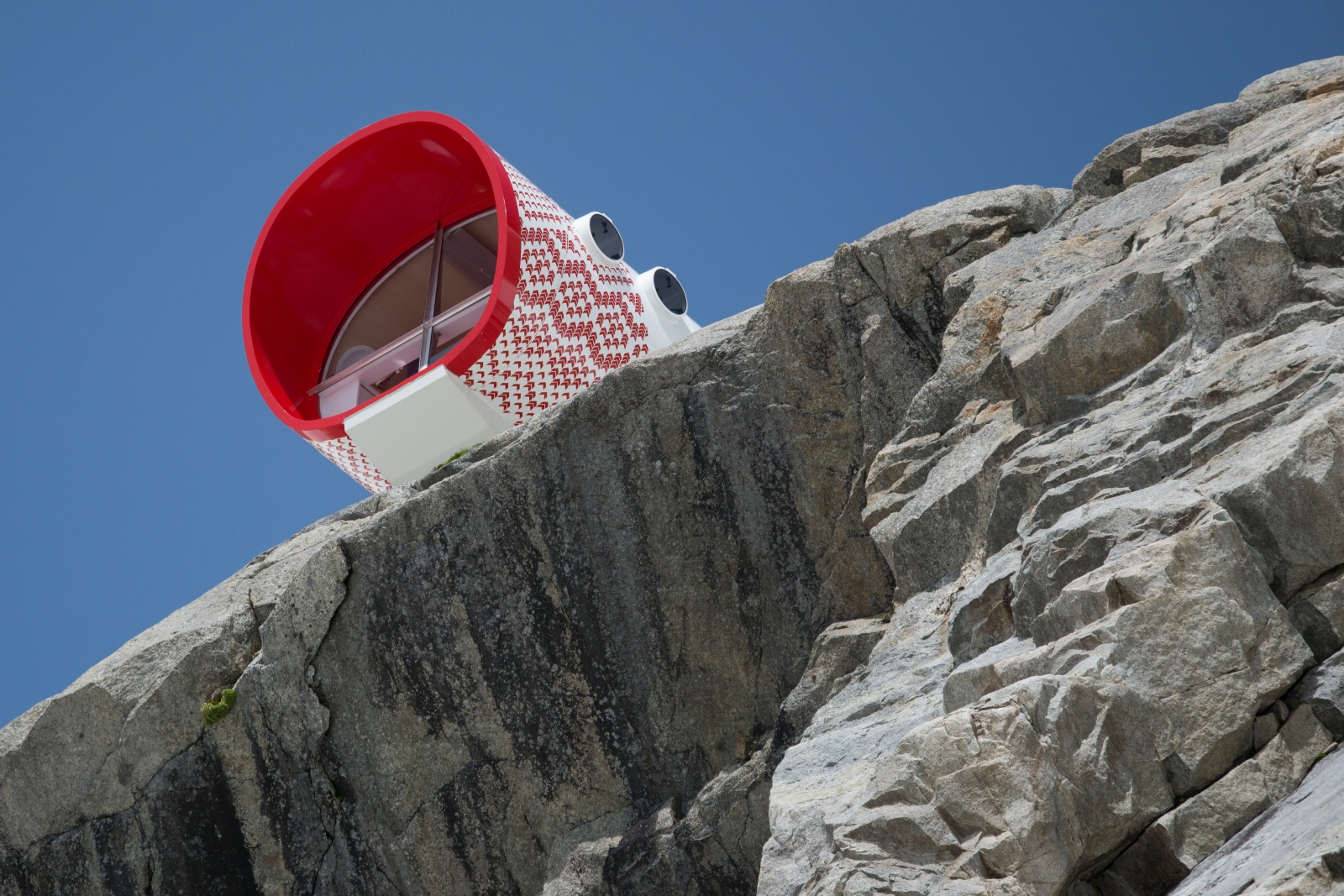 Procurando passar uma ou duas noites em uma cápsula da era espacial que parece balançar na beira de um penhasco? Situado a 9.300 pés (2.835 metros) acima do nível do mar, localizado no italiano Mont Blanc, o Bivacco Gervasutti Hotel, em homenagem ao alpinista Giusto Gervasutti, substitui um modesto abrigo de madeira construído em sua memória em 1948. Mont Blanc, que significa literalmente “Montanha Branca”, tem o pico mais alto da Europa e fica em uma cordilheira que abrange a Itália e a França. Um local popular para caminhadas, esqui e snowboard, a montanha agora é o lar deste hotel cápsula.