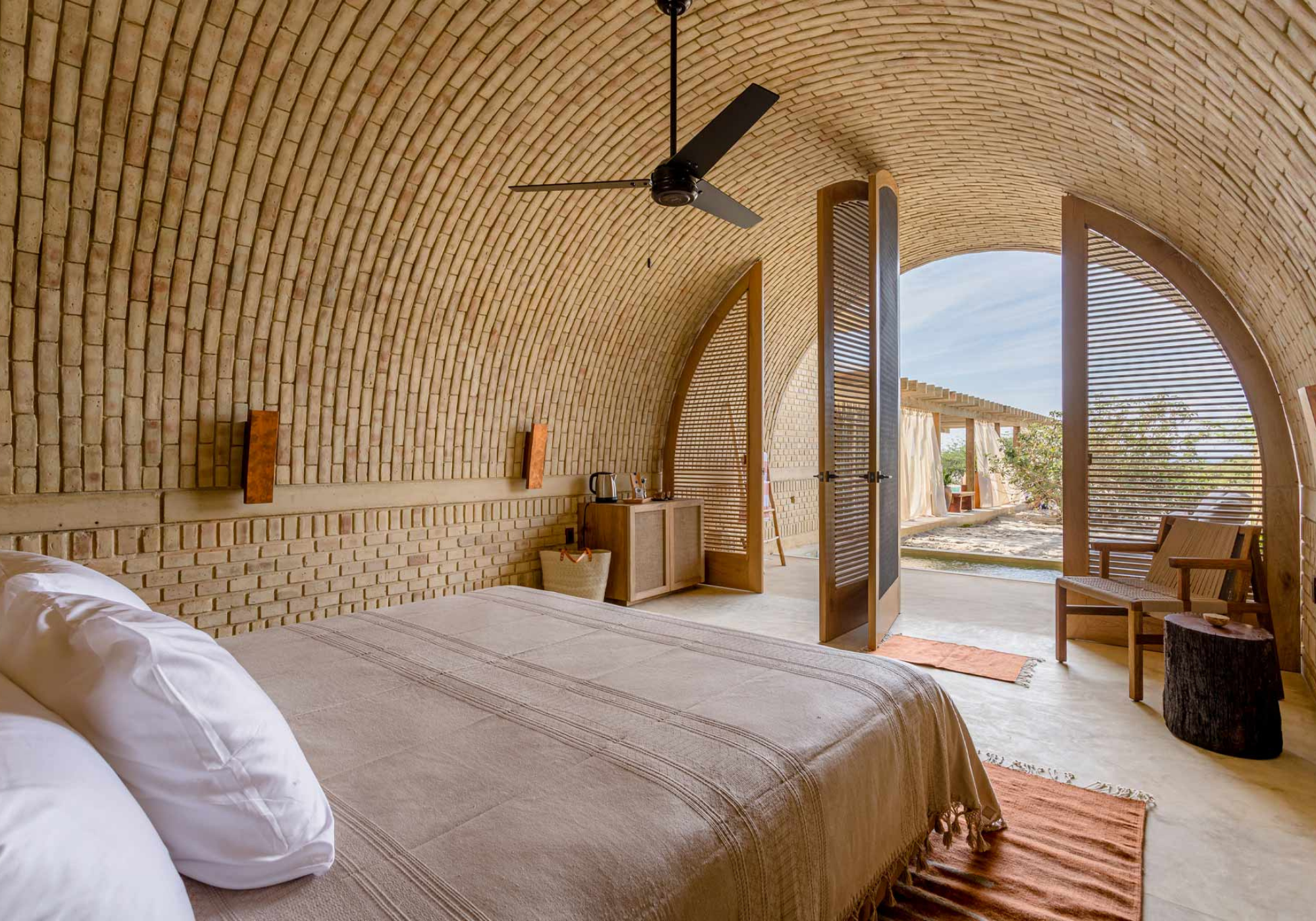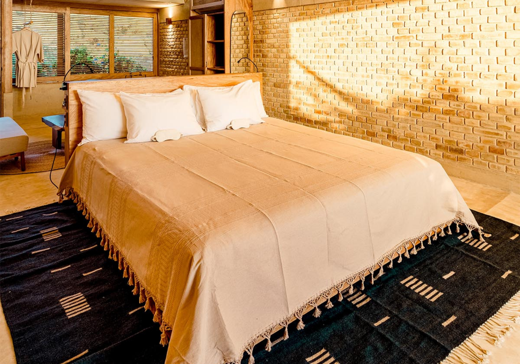 O interior de cada suíte exibe peças artesanais, como tapetes de Teotitlán del Valle, tecidos do Vale de Oaxaca e redes, cadeiras e cortinas de Yucatán. A proposta gastronómica baseia-se no cultivo à mesa, que garante ingredientes frescos e sazonais, todos provenientes dos pomares de produtores locais que respeitam os ciclos de colheita sazonal e não intensivo. Além disso, são oferecidas sessões de ioga, massagens, aulas de surf e atividades de ecoturismo, como observação de golfinhos e baleias, soltura de tartarugas marinhas, caminhadas e expedições pela propriedade.