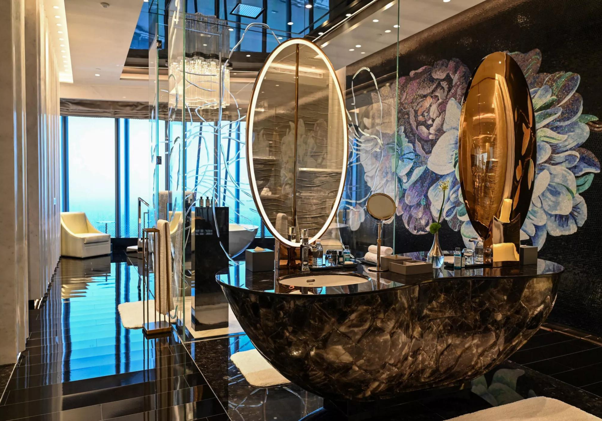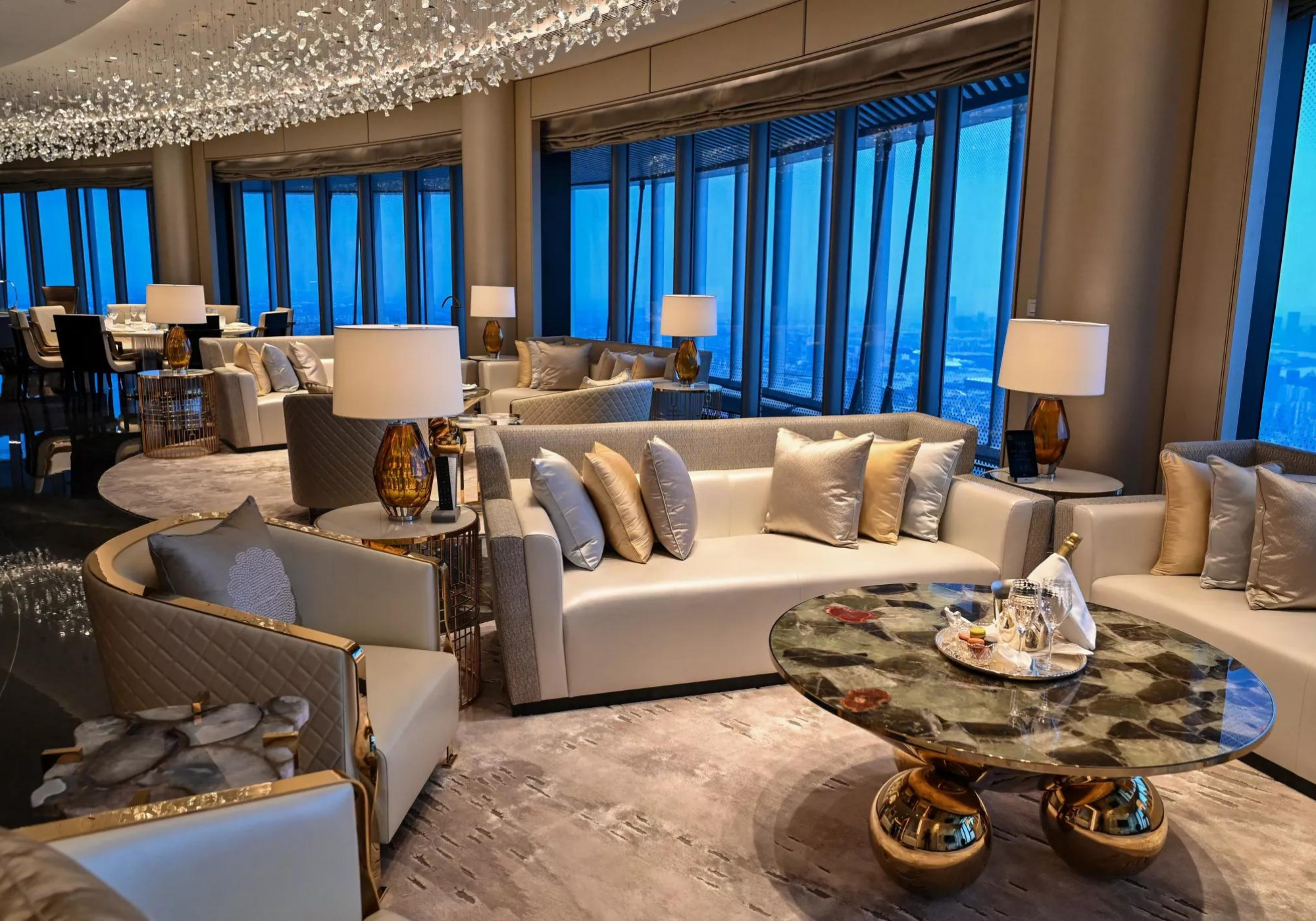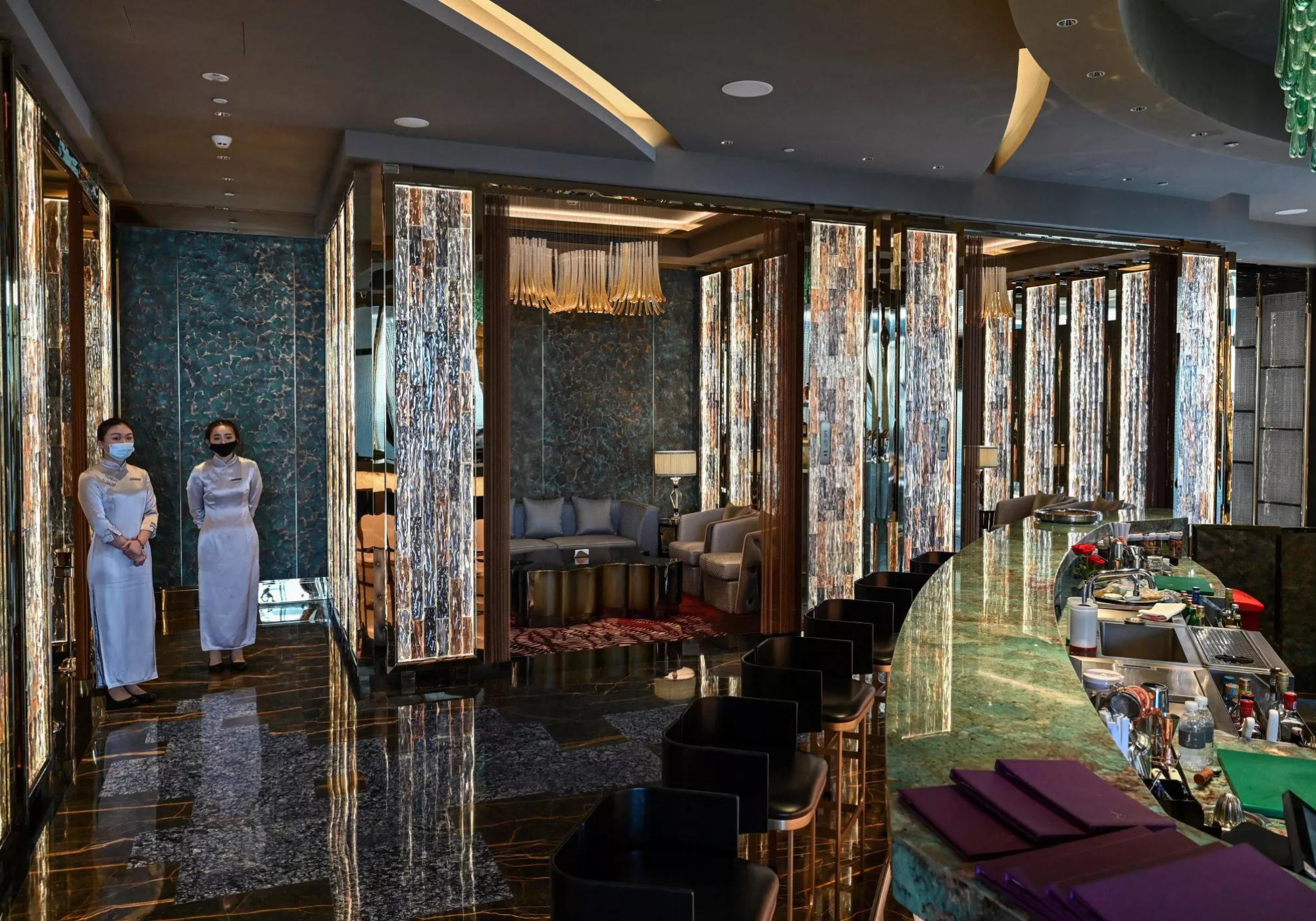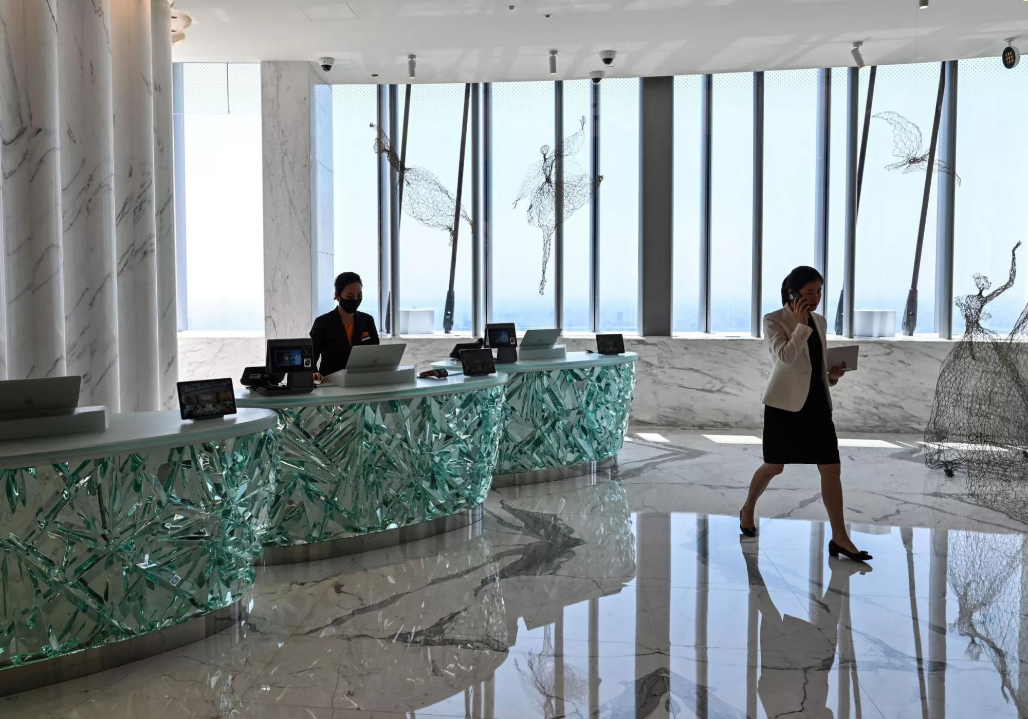 O hotel ocupa os andares superiores da Torre de Xangai, de 632 metros, no distrito financeiro da cidade, o segundo edifício mais alto do mundo depois do Burj Khalifa de Dubai.Sua inauguração foi atrasada em parte pela pandemia do coronavírus, mas o hotel agora começou a receber hóspedes que podem recorrer aos serviços de um mordomo dedicado a qualquer hora do dia ou da noite. Os clientes também podem desfrutar de sete restaurantes, bares, spa, piscina (localizada no 84º andar) e todas as outras instalações usuais de um hotel de primeira linha.