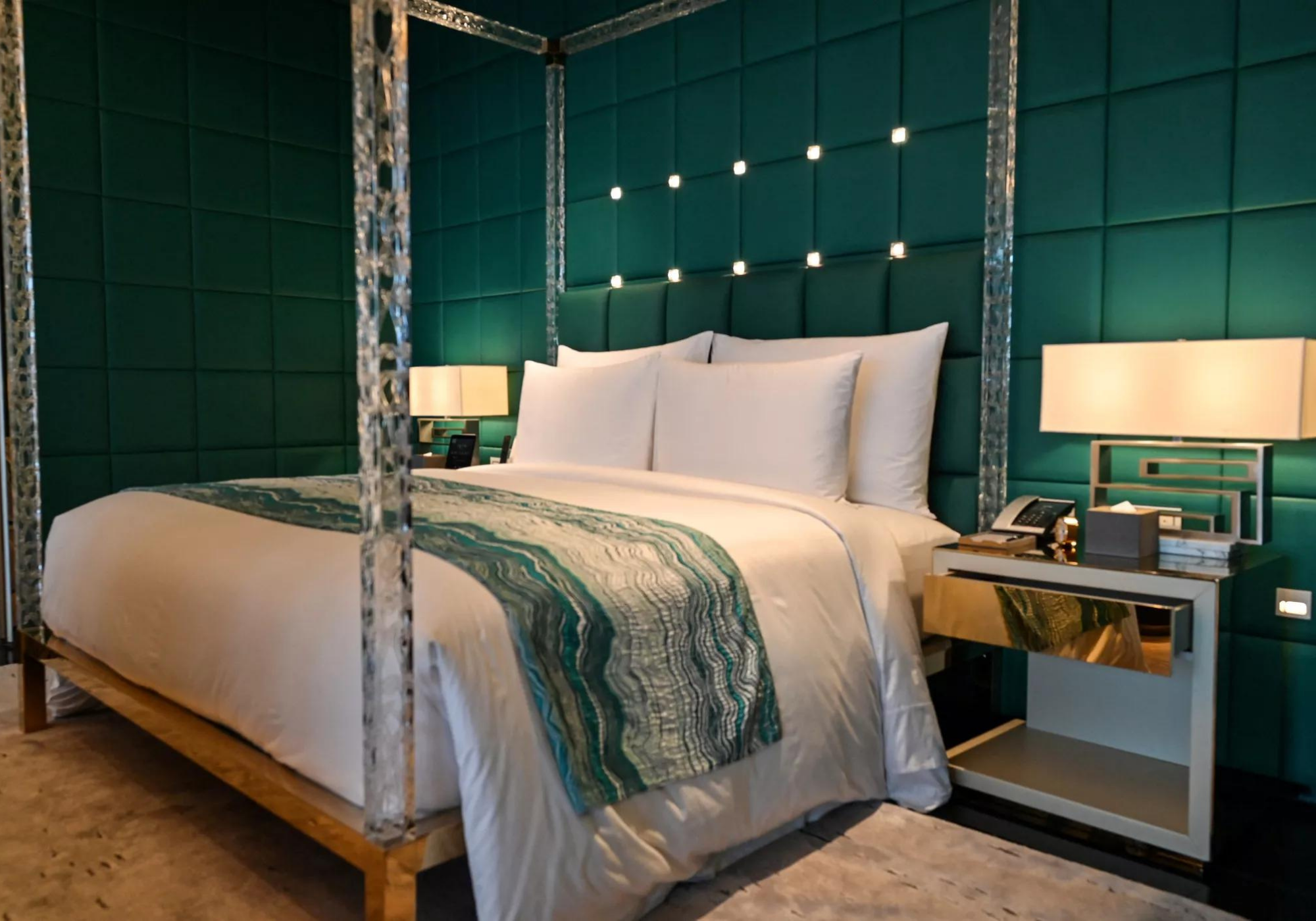 Para comemorar sua inauguração, o J Hotel está oferecendo uma “tarifa de experiência especial” de 3.088 yuans (R$ 2.342,00) por noite, mas os preços de suas 34 suítes decolam. Uma noite em uma “J Suite”, completa com lustres de cristal e sauna, custa mais de 67.000 yuans (R$ 50.867,00). O hotel faz parte do Jin Jiang International Hotels, um importante grupo estatal chinês, e foi inaugurado oficialmente no último sábado.