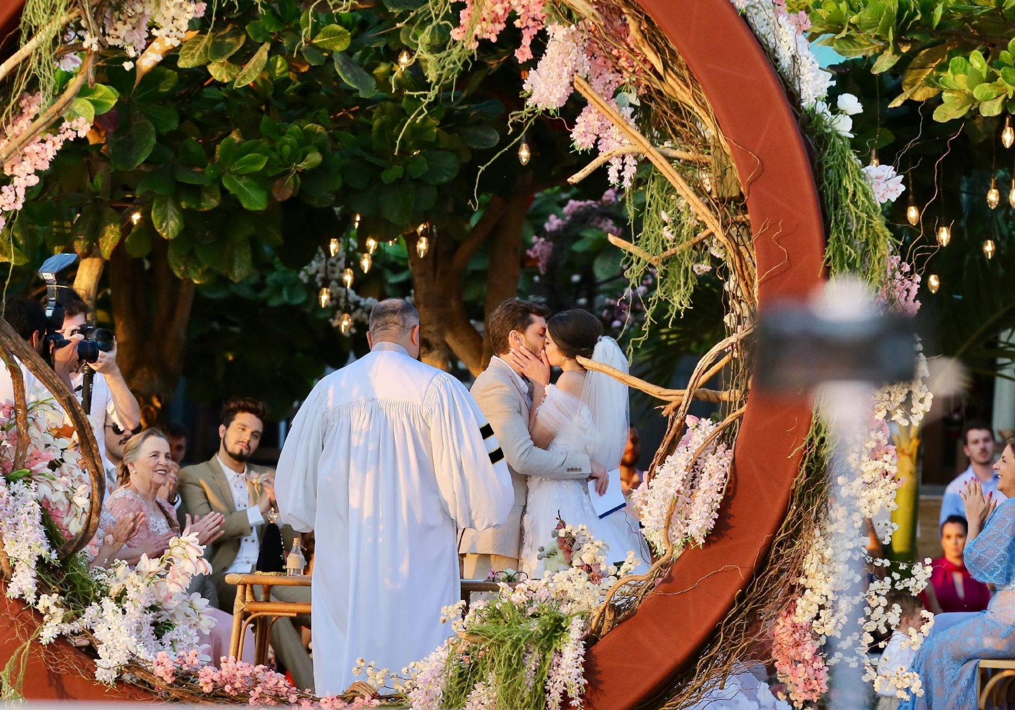 Os atores escolheram o luxuoso hotel cearense para celebração do casamento que ocorreu em agosto de 2018, reunindo cerca de 300 convidados. Situado no Parque Nacional de Jericoacoara, o Essenza está localizado de frente para o mar e ao lado da Duna do Pôr do Sol, um dos principais pontos turísticos da região, sendo um dos hotéis mais disputados da cidade e queridinho entre famosos. Os 30 quartos contam com piscinas privativas. O casamento cheio de detalhes da decoração não foi surpresa. Um arco de flores em tons de rosa ao fundo do altar foi a marca registrada da cerimônia. Na festa, um balanço e muitas flores penduradas por todos os lados. Vale lembrar que o hotel oferece piscina privativa nos quartos e um atendimento 5 estrelas.