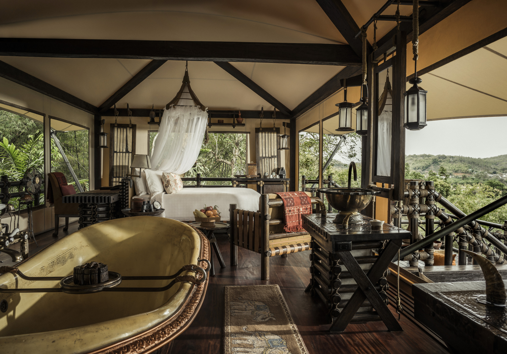 Famoso por suas exuberantes selvas de bambu, trilhas de aventura e uma experiência longe de tudo, o Triângulo Dourado reúne culturas e mostra a diversidade não apenas da Tailândia, mas também de seus vizinhos – Mianmar e Laos. Com apenas o rio Ruak para separar as fronteiras, os hóspedes que “vislumbram” as acomodações exclusivas na encosta do Four Seasons Tented Camp Golden Triangle têm o ponto de vista ideal para explorar as experiências fascinantes reunidas pela equipe de especialistas do Camp.