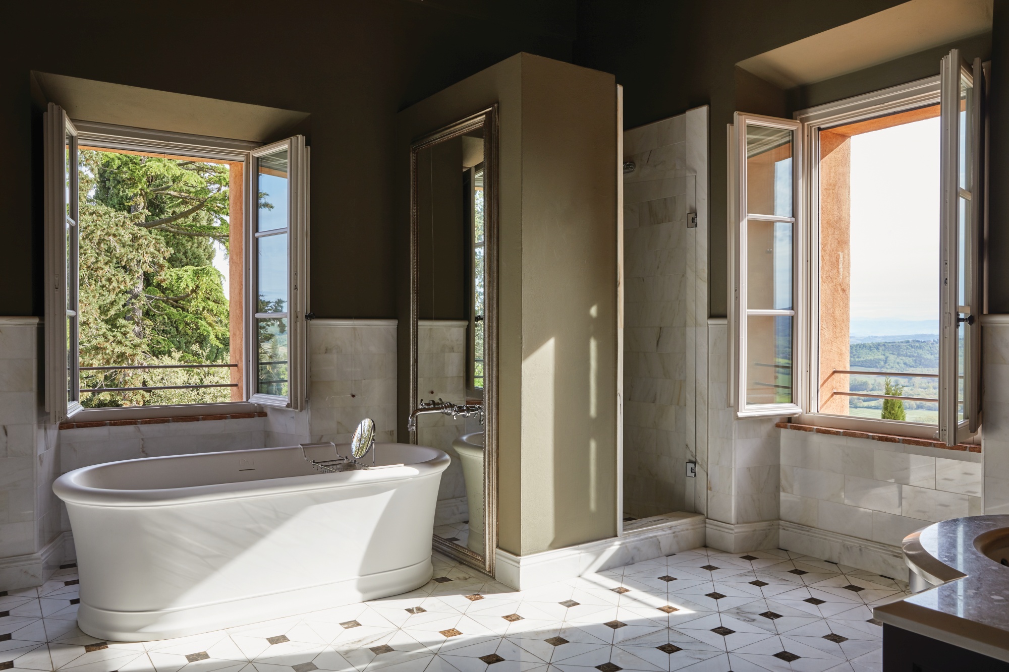 Tetos com vigas de madeira originais e paredes de pedra são combinados com tecidos e móveis modernos, criando uma bela mistura do antigo e do contemporâneo neste castelo. O Belmond Castello di Casole também oferece aos hóspedes a oportunidade de alugar uma casa de fazenda no campo e ficar entre os vinhedos, se assim o desejarem. Todas as casas de fazenda da propriedade foram feitas com materiais originais, incluindo pedras, tijolos e terracota usados há séculos. Atualizações modernas, como cozinhas espaçosas e piscinas de borda infinita com azulejos de vidro, adicionam um toque mais luxuoso a este castelo já encantador.