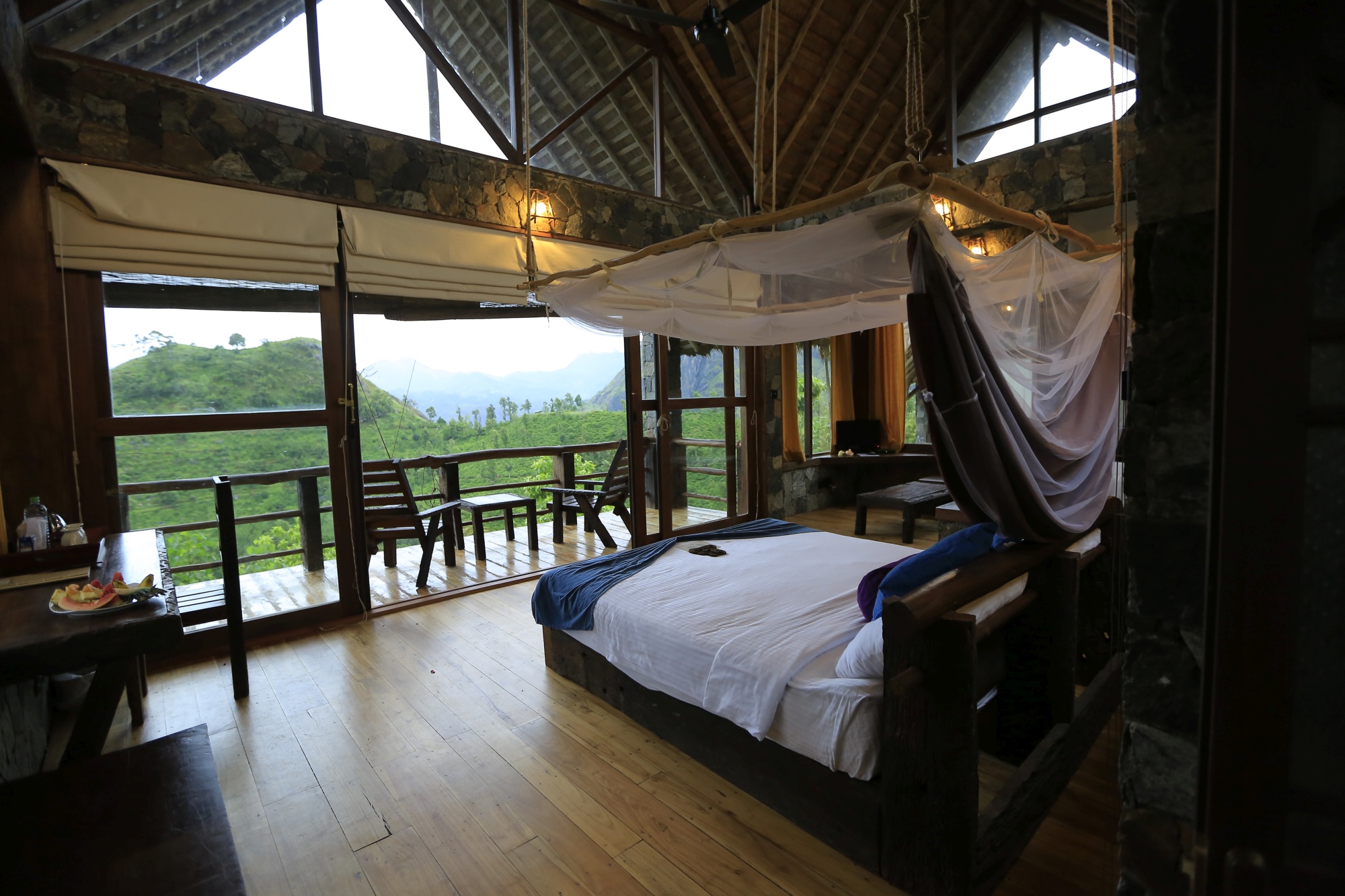 Situado na bela região montanhosa do Sri Lanka, este resort boutique é o ápice da elegância. Construído em uma plantação de chá de 98 acres, o 98 Acres Resort & Spa é um resort com design exclusivo que combina bem com a natureza da região, abrigando chalés charmosos, feitos principalmente de substâncias recicláveis. Travessas de ferrovia descartadas compõem os decks e paredes do resort, enquanto o piso é feito de granito talhado.