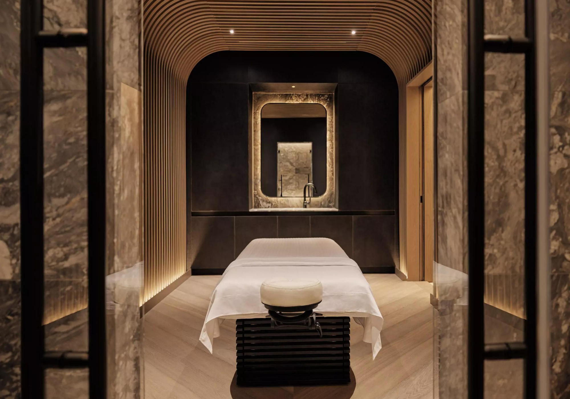 Você começa no spa, onde é conduzido a uma sauna infravermelha privada que o banha em comprimentos de onda de amplo espectro, destinados a auxiliar no reparo muscular, no alívio da dor e no rejuvenescimento celular. Como benefício adicional, você também pode ter uma boa sensação de relaxamento e dormir melhor. Em seguida, você é levado para a “Tabela de ondas”. Este é o lugar onde a terapia de ressonância harmônica e sonora envolvente ajuda você a atingir um estado profundo de descanso. Um tratamento de trinta minutos deve ser tão repousante quanto várias horas de sono. Então é hora de acordar com uma emocionante imersão de três minutos em um tanque de crioterapia. Sim, está realmente frio, (-150ºC), mas você vai emergir queimando muitas calorias e estourando com endorfinas. Para ajudar o tempo a passar, você pode escolher sua música favorita e dançar.