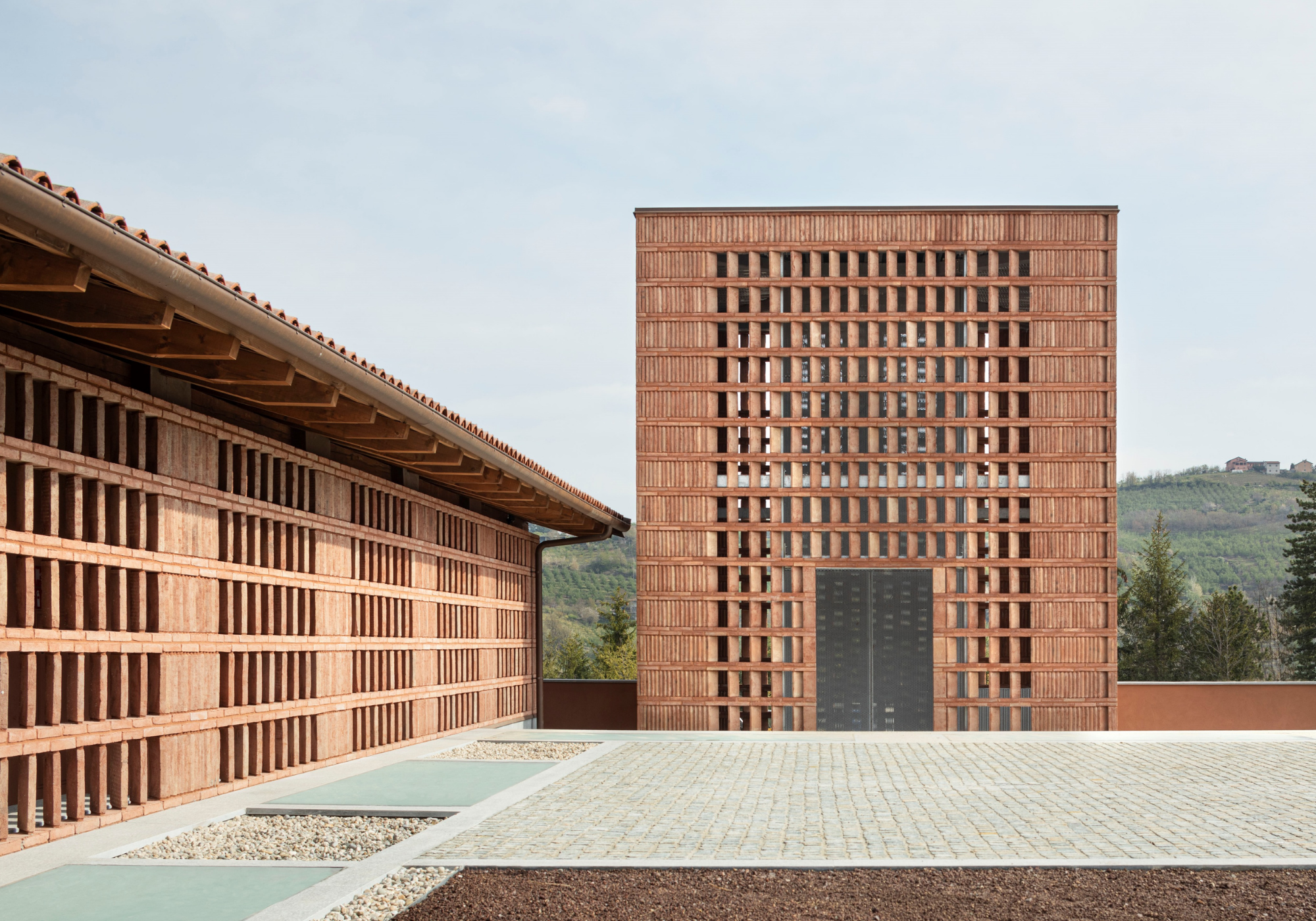 Localizada em mais de 40 hectares de terra na porta de entrada para a região de Langhe, um Patrimônio Mundial da UNESCO, a Casa di Langa teve o cuidado de não aumentar sua pegada na terra existente, mas minimizá-la reflorestando a terra e plantando árvores nativas para aumentar seu espaço verde.