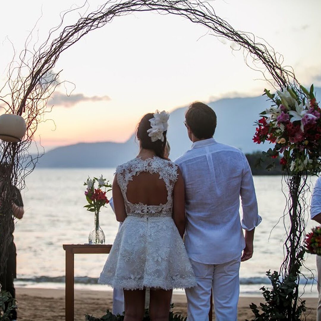 A cerimônia proporciona um ambiente íntimo, aconchegante em um cenário paradisíaco na praia do Julião, cercado pela Mata Atlântica com areias claras e águas verde esmeralda. O pôr-do-sol de cor alaranjada une a beleza do cenário com o caminhar da noiva – de pés descalços – ao altar montado à beira mar. O TW Guaimbê Exclusive Suites oferece opções para recepção, hospedagem de convidados e mini-weddings para noivos em busca de uma casa para trocarem os votos.