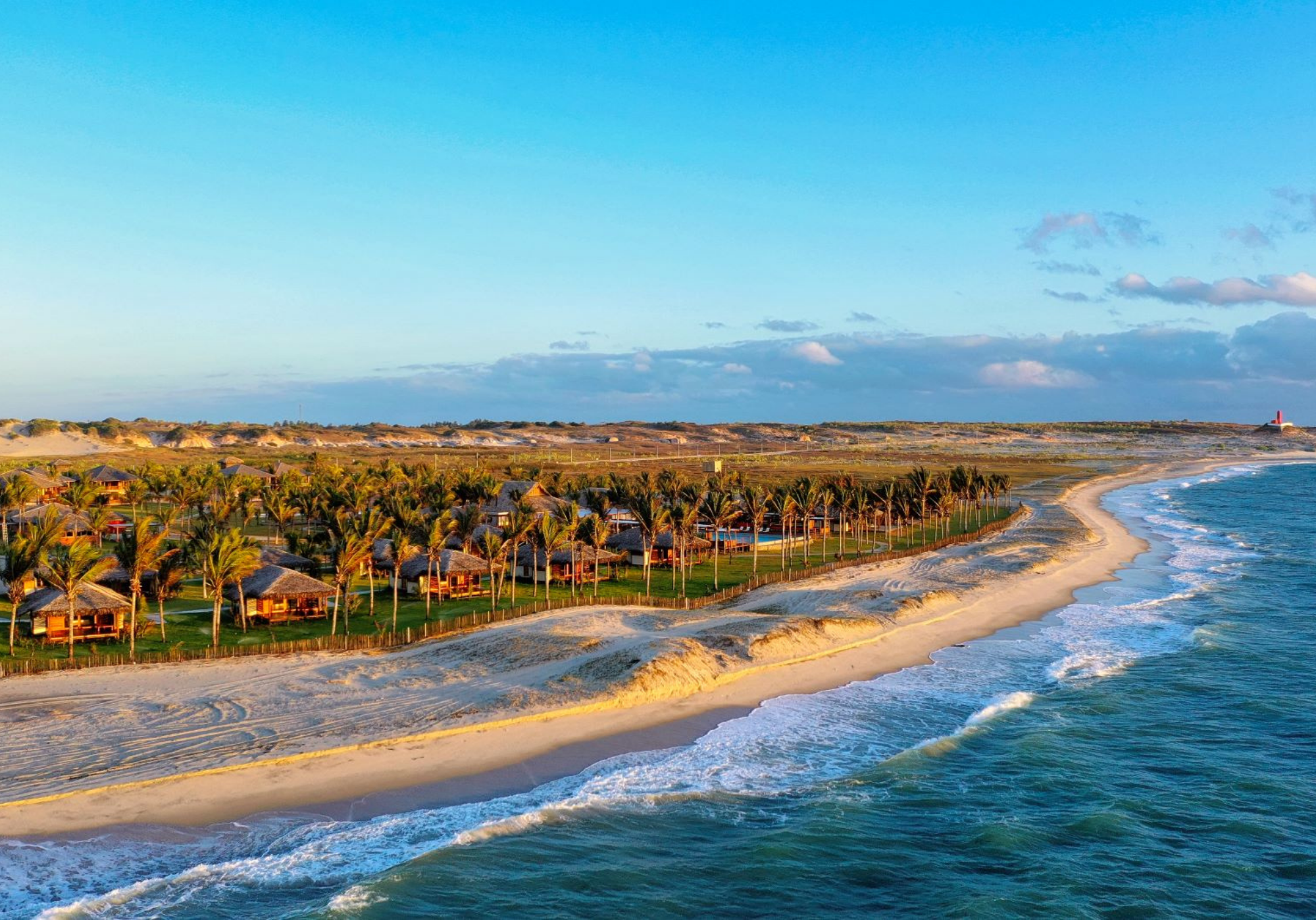 Um novo hotel de luxo será inaugurado em novembro no Ceará. Trata-se do Jaguaríndia Village, que ocupa uma área de 50 mil m2 diante do mar, no município de Fortim. Dos mesmos idealizadores do Jaguaribe Lodge e do Hotel Vila Selvagem – ambos integrantes da Associação Roteiros de Charme –, o empreendimento é fruto de um investimento de R$50 milhões e aposta no conceito “slow travel“, prometendo uma experiência com a natureza e as raízes brasileiras. Com diárias a partir de R$ 2.300, o Jaguaríndia Village tem 30 acomodações, divididas em oito tipos de bangalôs e dois modelos de apartamentos (com duas suítes ou três quartos).