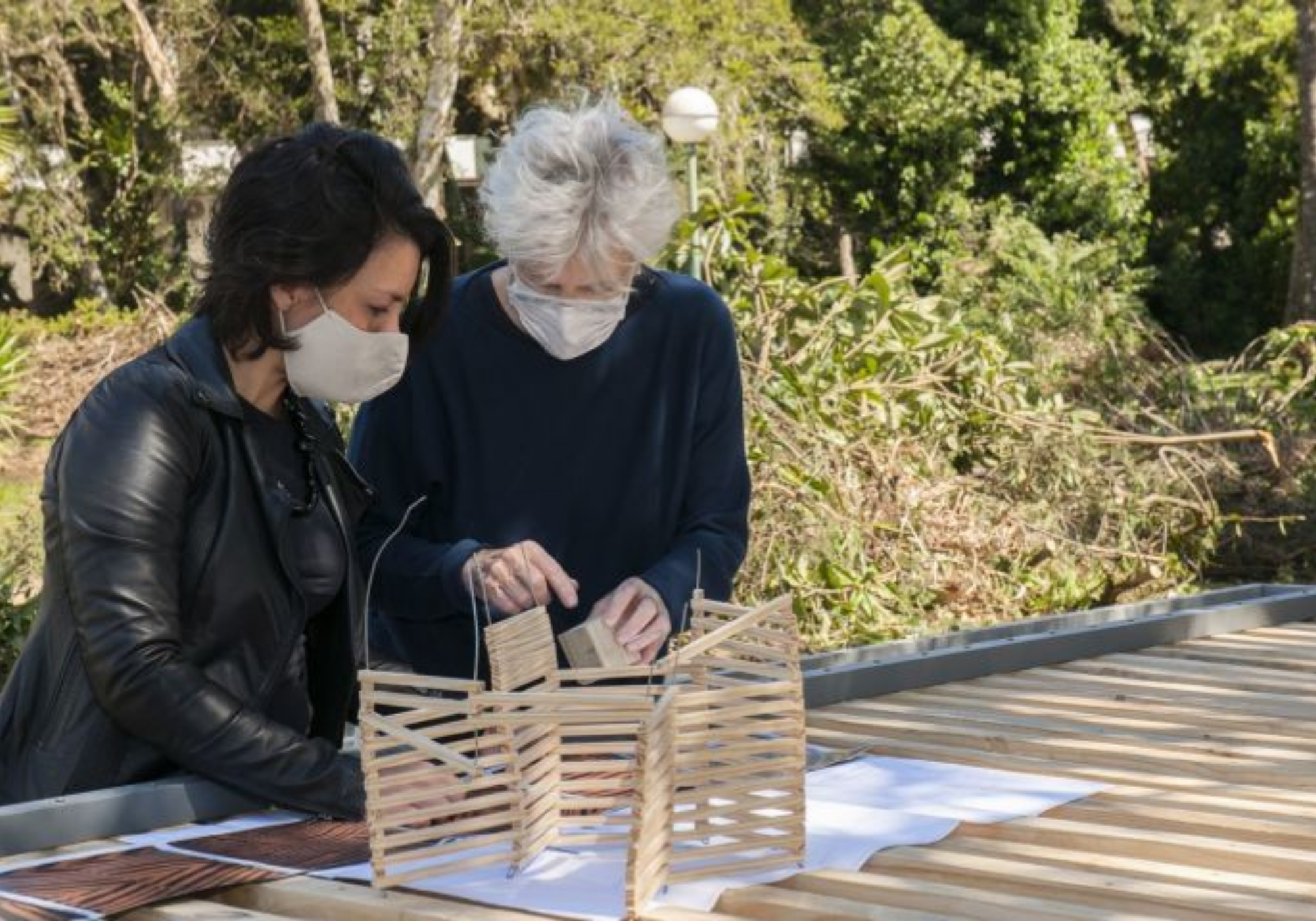 O nome é literal e poético ao mesmo tempo. Assim como na natureza, Casulo será um induto até o (re)nascimento: “Por muitos anos a laje de pedra ficou escondida pela construção do hotel. Este foi o ponto de partida da ideia de “encasular” o existente para daqui três anos revelar a transformação. Pensei em um material da região, muito familiar ao meu trabalho e que quando for retirado será reaproveitado”, explica Heloisa.