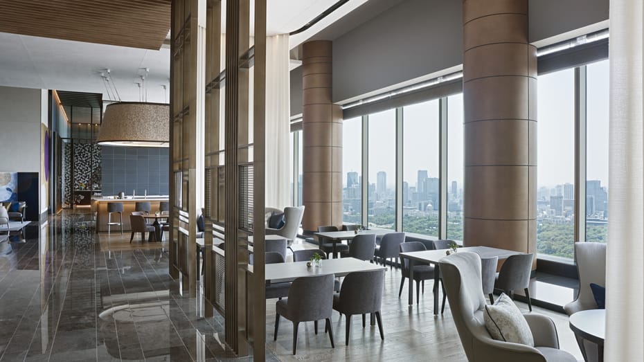 O hotel ocupa os últimos seis andares de um novo prédio com 39, projetado pela empresa Skidmore, Owings & Merrill, que inclusive criou o majestoso Burj Khalifa, em Dubai. O renomado arquiteto Jean-Michel Gathy, responsável pelos interiores, criou espaços acolhedores e dinâmicos inspirados na estética japonesa e nas vistas panorâmicas de Tóquio. Ao todo, são 170 quartos e 20 suítes que refletem o contraste entre modernidade e a tradição.