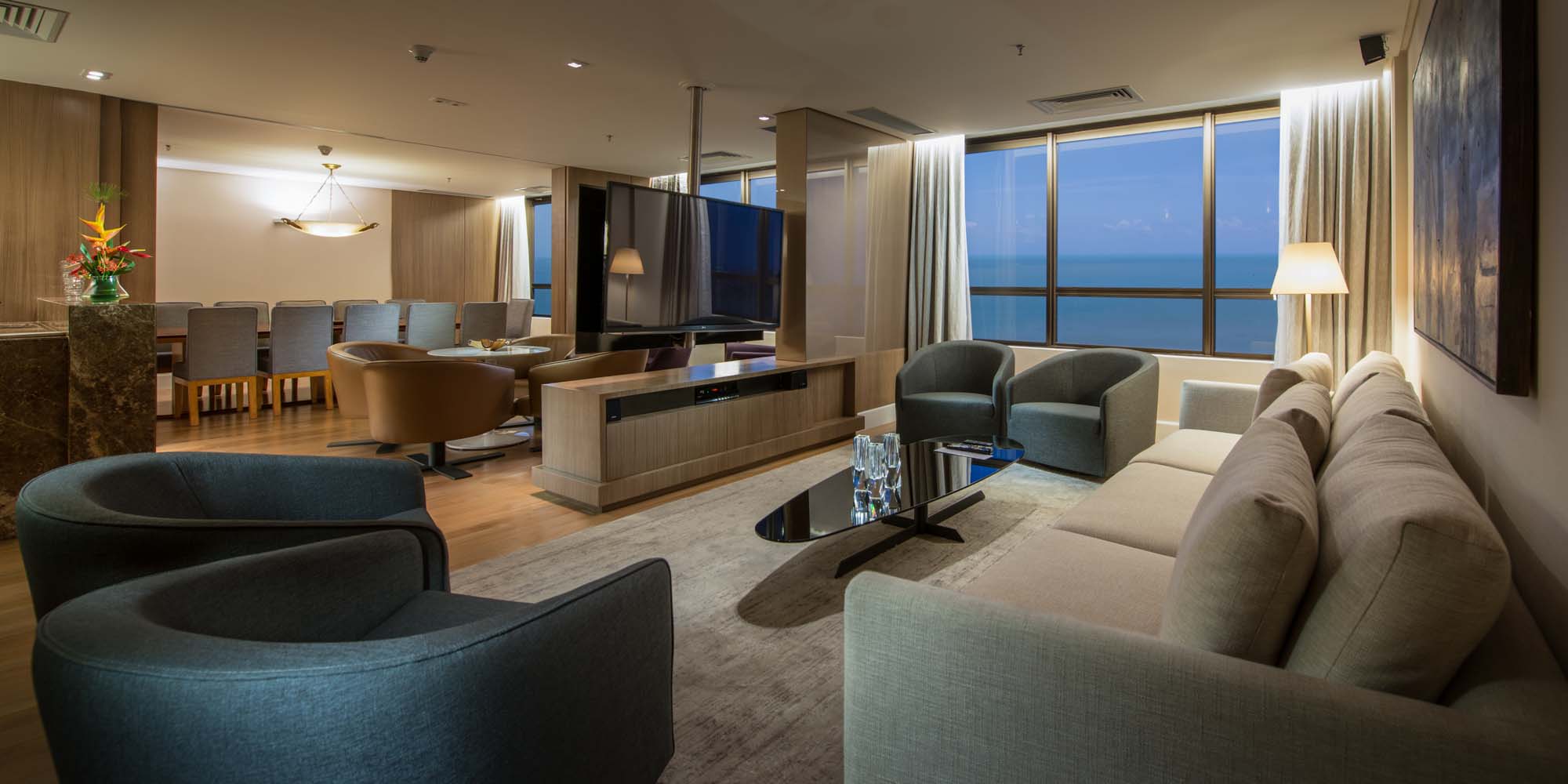 Há dois restaurantes, um terraço e um bar no lobby. Entre as outras comodidades estão uma sala de ginástica, um Spa com assinatura L´Ocittane, uma banheira de hidromassagem externa e uma piscina externa na cobertura com solário ao ar livre. Um dos pontos mais altos do Gran Marquise é o seu café da manhã: servido em buffet, também oferece pratos deliciosos à la carte. A variedade e o sabor são destaques na gastronomia do Gran Marquise, que conta com típicos pratos cearenses e asiáticos em seu cardápio! A especialidade da casa são os grelhados, peixes e frutos do mar. Tudo a ver com o cenário praiano, não é mesmo?