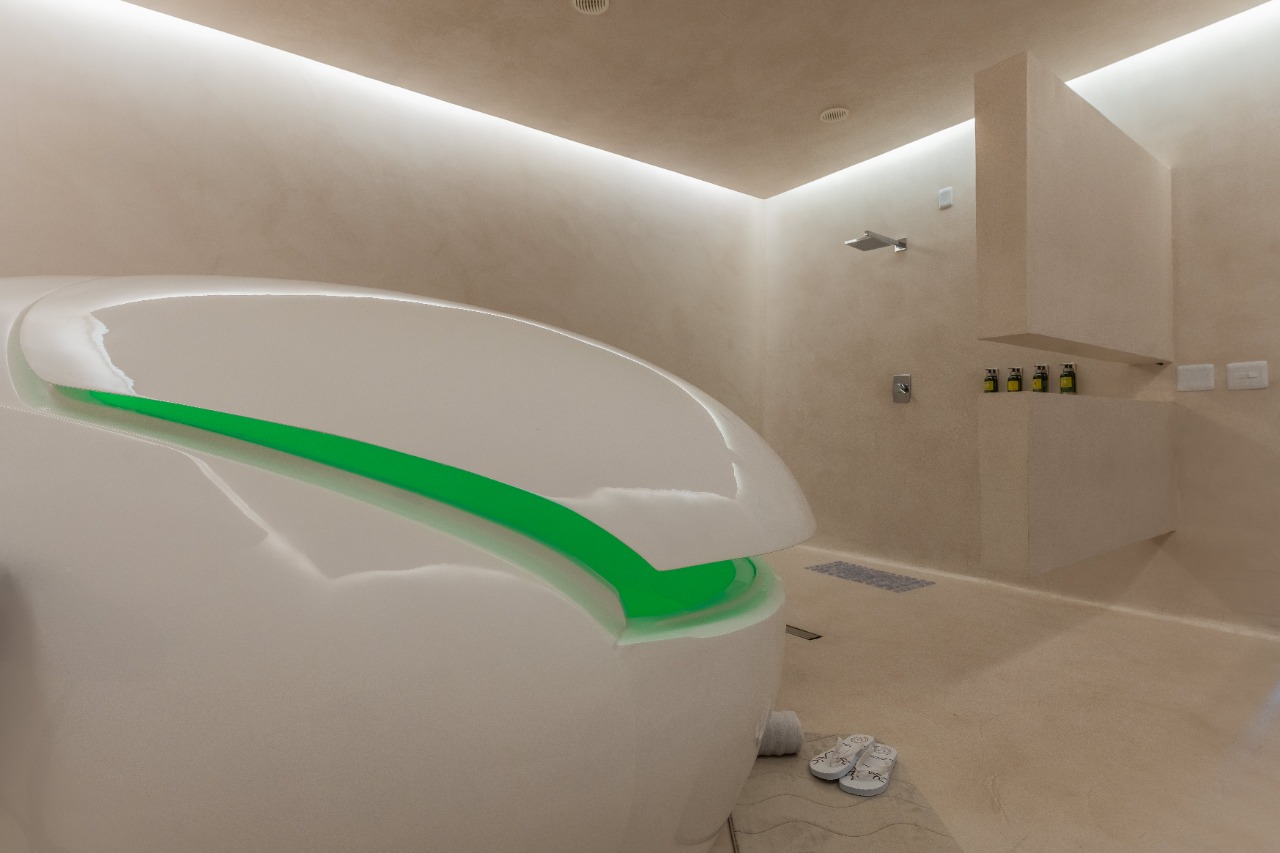 Na sala de flutuação, o ambiente é totalmente neutro, sem ruídos estéticos, com iluminação e ventilação controladas, hermeticamente protegido de influências externas por seu isolamento termoacústico. O protagonismo fica por conta da cápsula e das experiências e sensações que a pessoa poderá ter enquanto flutua.