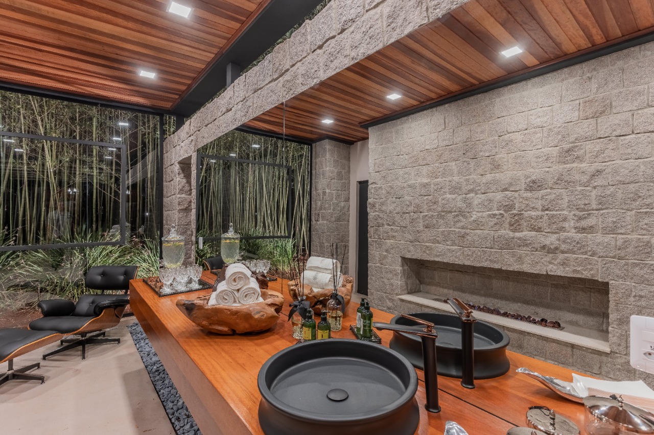 “Para a construção do SPA, priorizamos materiais naturais, locais e renováveis. Toda a madeira é proveniente do reflorestamento do hotel, as pedras utilizadas vem de uma jazida da região metropolitana de Curitiba, os colaboradores da execução da obra e os prestadores de serviços são todos trabalhadores da região. Proporcionamos uma execução de obra com baixa pegada na emissão de Carbono”, explica o arquiteto Eduardo Gomes, responsável pelo projeto.