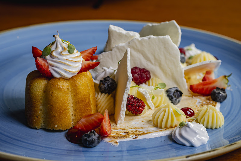 Delícias de Natal (Canelé Baba au Rum, Pavlova em 3 texturas, frutas vermelhas frescas)