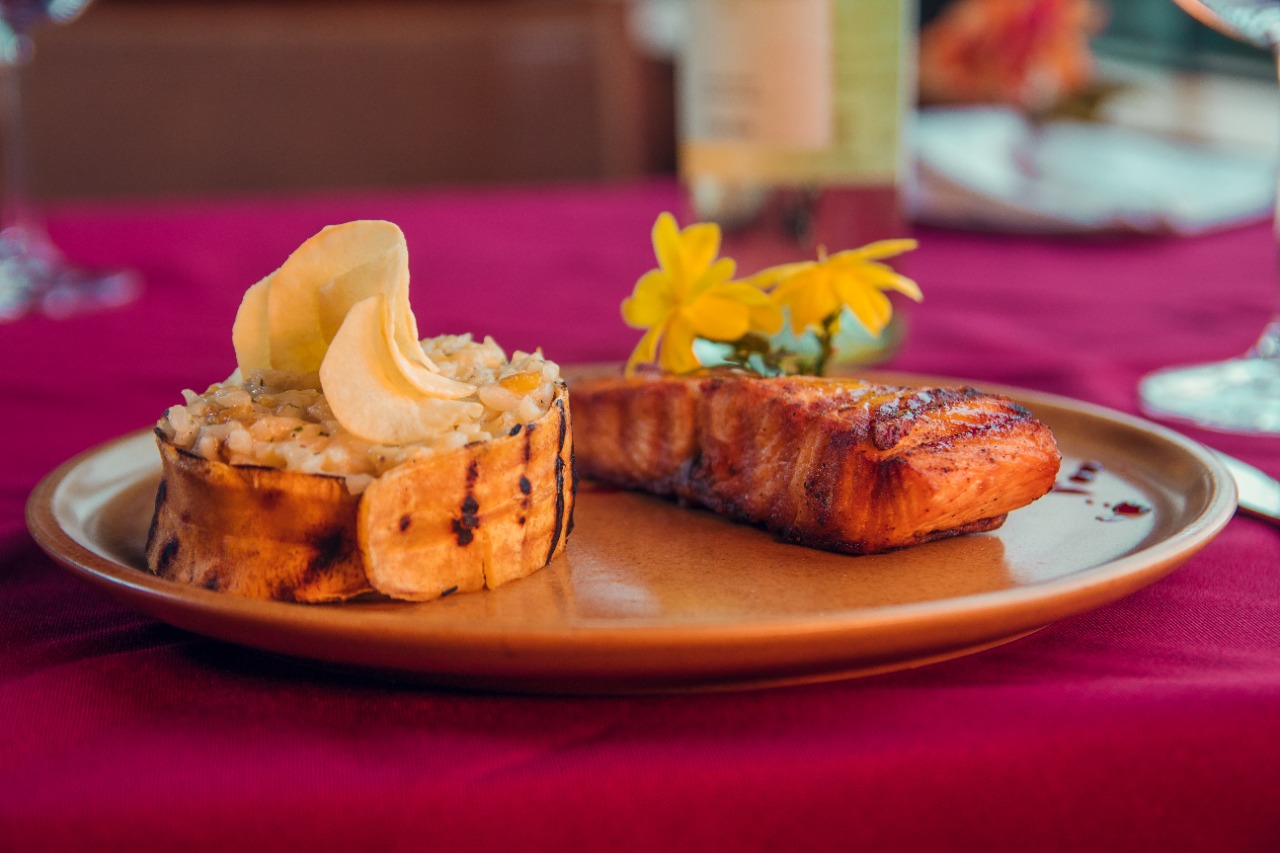 A nova receita foi criada com muito carinho pelo chef Marcel Strass, que reuniu um risoto de banana da terra com chips de mandioquinha e salmão ao molho de maracujá e redução de vinho tinto. “O prato, com características agridoce, surgiu com a ideia de ‘abrasileirar’ o salmão com ingredientes que fossem típicos do nosso país”, ressalta o chef.