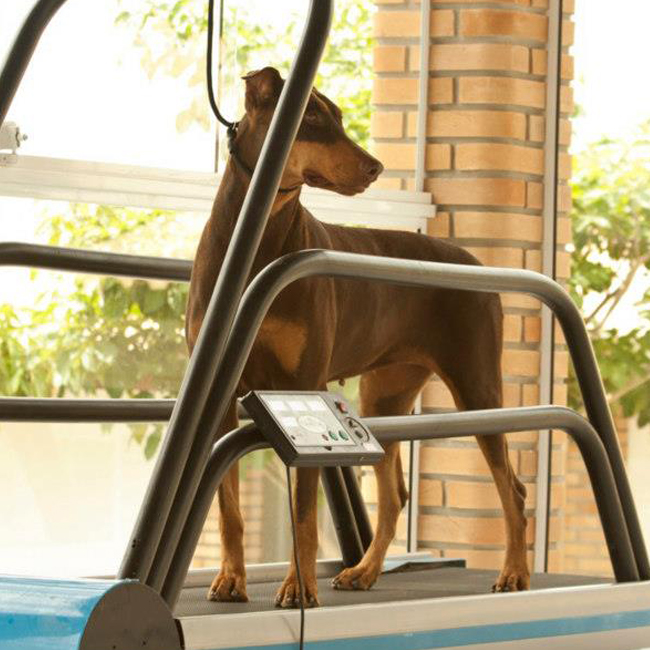 Cachorrinho na esteira do Malabo Pet Resort | Foto: Divulgação
