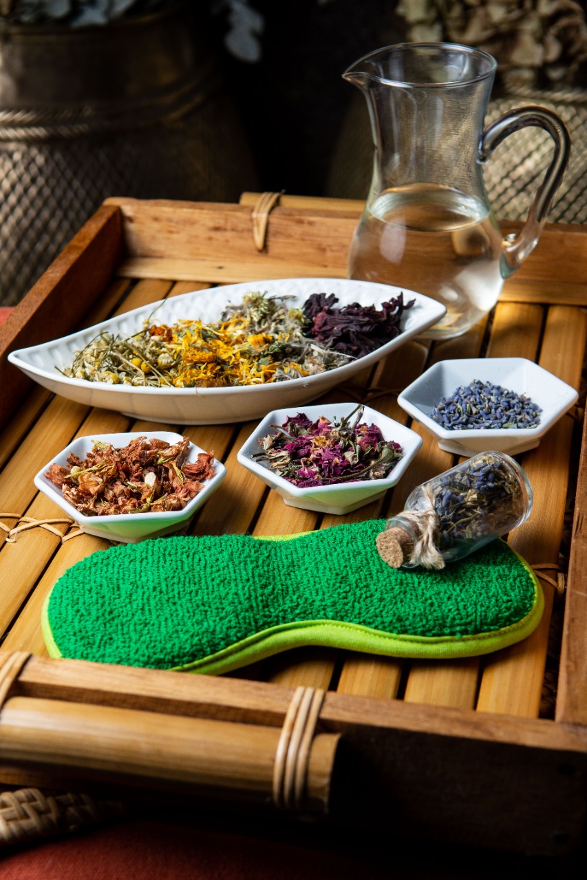 A nova terapia começa com escalda pés feito em um chá de oito flores (calêndula, alfazema, jasmim, macela, camomila, rosas vermelhas), óleo vegetal de girassol, óleo essencial de gerânio e de lavanda, e água de flor de laranjeira.