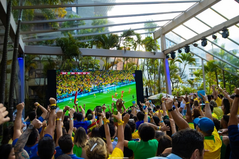Durante a tarde, além da transmissão da partida em telões de alta definição, rolou uma programação comuito entretenimento, gastronomia de alta qualidade e open bar premium, incluindo o champagne Taittinger, oficial da Copa do Mundo 2022. O evento está sob cuidados do relações públicas, Dori Neto.