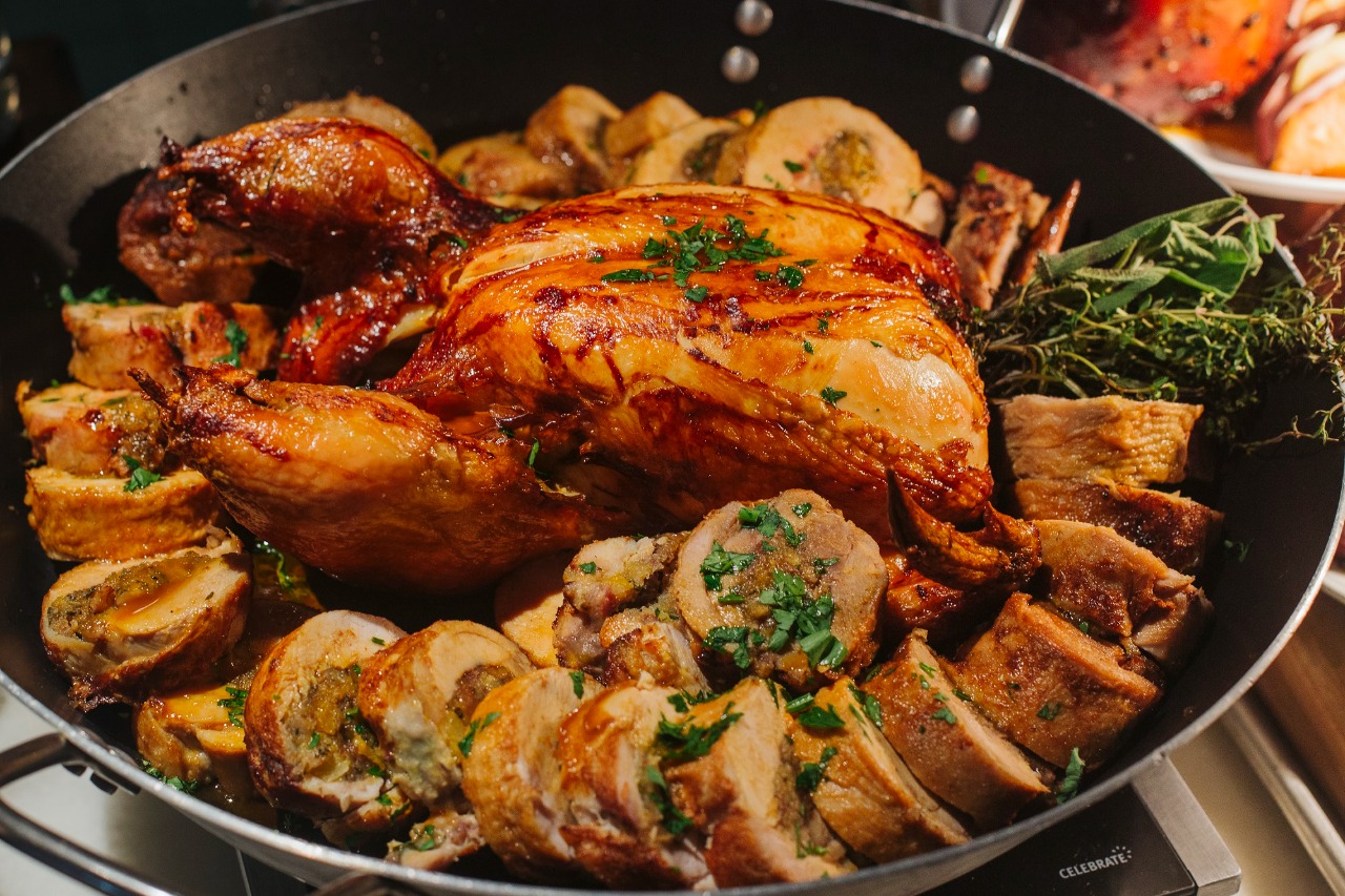 O clima de festa invade o hotel já na tarde do dia 24, quando o Cantô abre suas portas para oferecer seu clássico buffet de feijoada das 13h às 16h, À noite, no mesmo dia, quem faz as honras é o Espaço Tano. A ceia de Natal servida no local das 20h às 01h contará com pratos típicos natalinos, como o Peru inteiro recheado com bacon e farofa especial e o arroz de bacalhau, e também com Estações de Frios e Queijos, Massas e Risotos, Carne e Ave, Peixes e Frutos do Mar e saladas diversas. As deliciosas sobremesas da confeitaria do hotel estarão presentes, com Macarons, Tronco de Natal de chocolate com Praline, Panetone Tradicional, Rabanadas, Verrine de baunilha com romã e muitas outras opções para adoçar a noite mágica. Para beber, estarão disponíveis opções não-alcóolicas, cerveja, vinhos branco e tinto e espumante Chandon. Para a comemoração, o Grand Hyatt garante ainda a presença de Papai Noel e música ao vivo (valor por pessoa R$ 880, já com taxas).