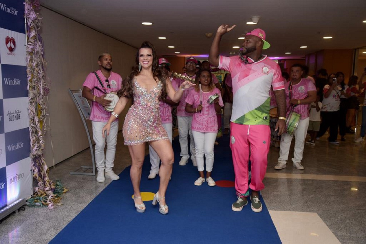 Renata Santos e bateria da Mangueira | Foto: Leo Marinho e Robson Moreira