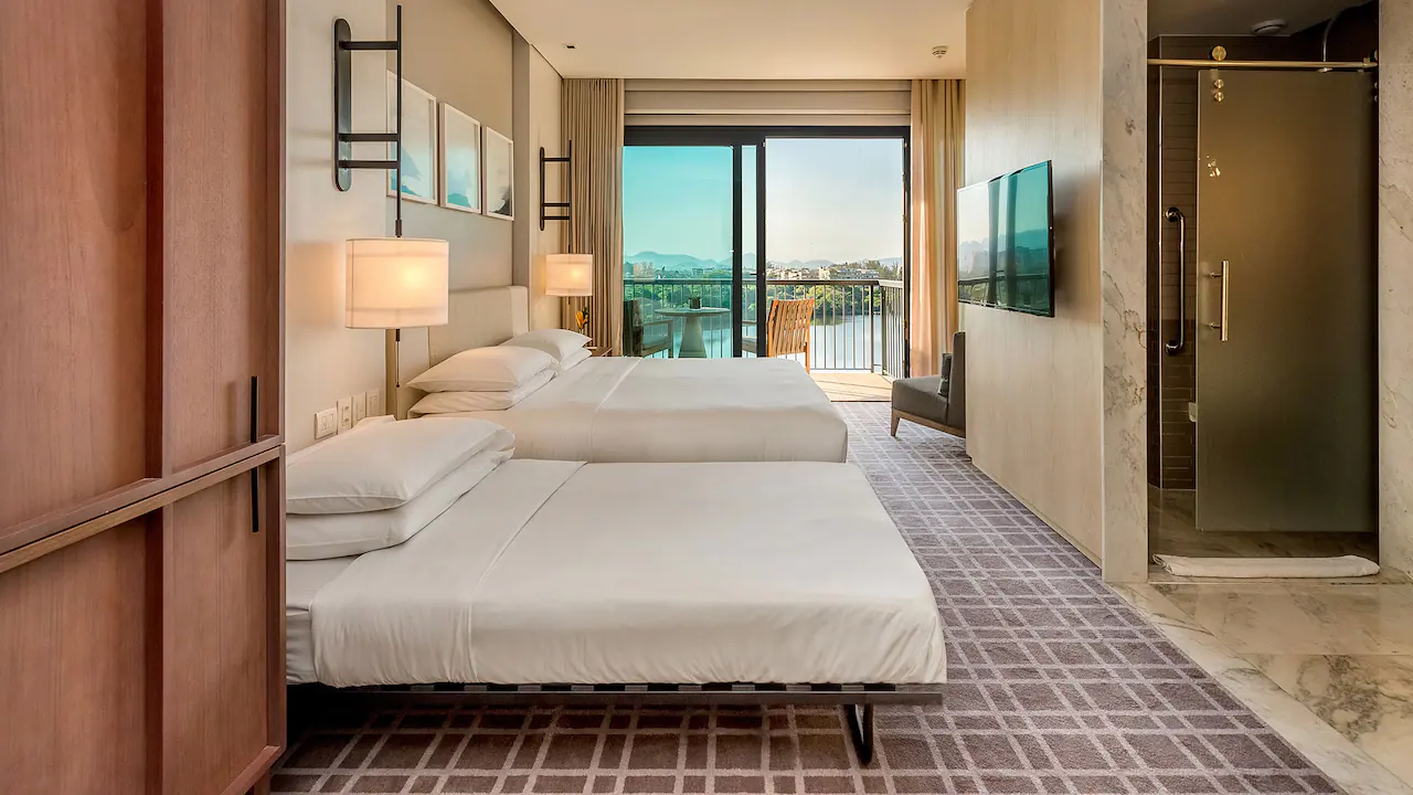 Os 436 apartamentos, incluindo 43 suítes, foram projetados pelo renomado escritório de design internacional Yabu Pushelberg, Os espaços são locais de fuga perfeitos, refletindo a atmosfera circundante com o uso de pedras nativas e tecidos exclusivos e contam com sacada e janela do chão ao teto. Alguns têm vista para a lagoa ou para o mar. Todos oferecem Wi-Fi gratuito e TV com tela plana, além de frigobar e cafeteira Nespresso. Os quartos VIP incluem acesso ao lounge com coquetéis e café da manhã grátis. As suítes dispõem de sala de estar separada.