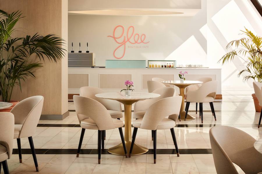 Contagiado por esta nova serenidade, o Glee Boutique Café adota também esta paleta de tons neutros, dando assim ainda mais ênfase à sua colorida confeitaria francesa, onde se destacam os deliciosos bombons e os macarons em tons pastel.