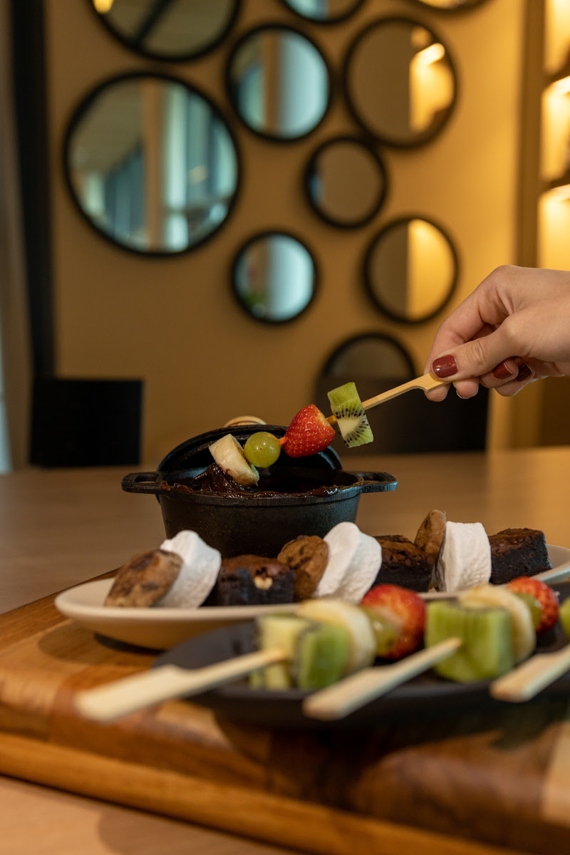 E a grande novidade do Varal de Inverno é o fondue de chocolate belga preparado pela chef Paula Peixoto e sua equipe. Tudo é produzido artesanalmente, inclusive os deliciosos acompanhamentos: marshmallow, cookie e brownie, com as indispensáveis frutas frescas, tornando a experiência gastronômica ainda mais especial.