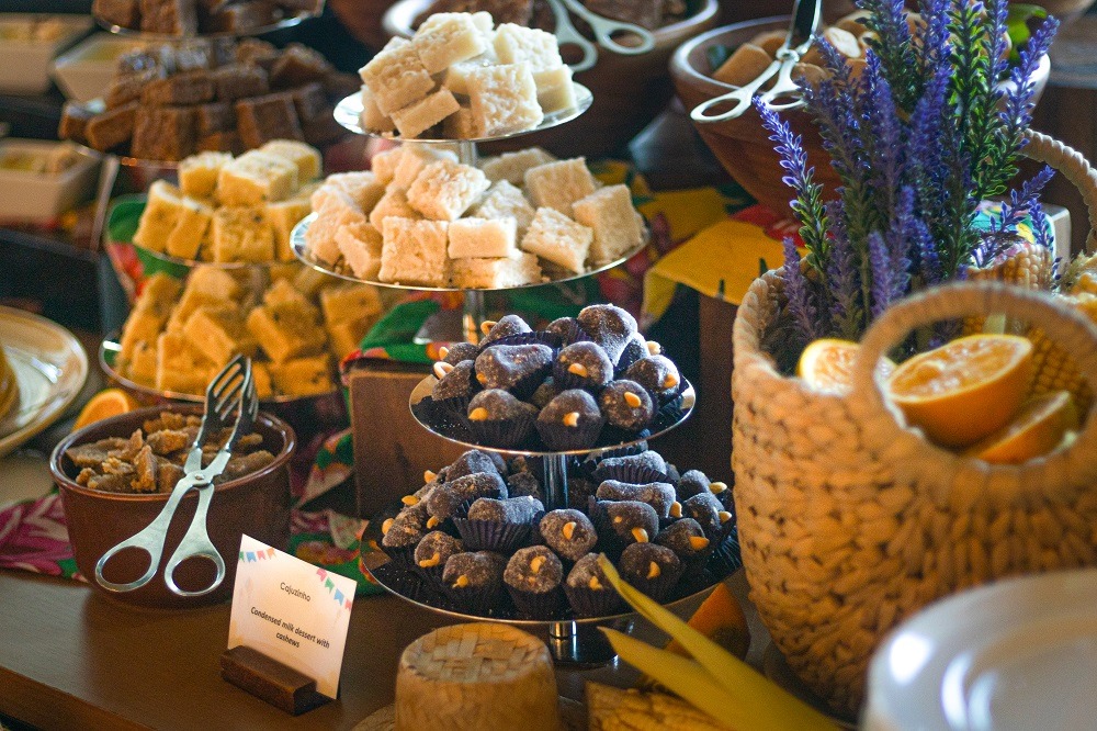 Para adoçar, o cardápio de sobremesas não deixa nada a desejar. São mais de dez opções de doces, como quindim, queijadinha, cuscuz, bolo de aipim, rapadura e pé de moleque. Para harmonizar: espumante, suco do dia e água saborizada à vontade, além dos festivos quentão e vinho quente, que não poderiam faltar.